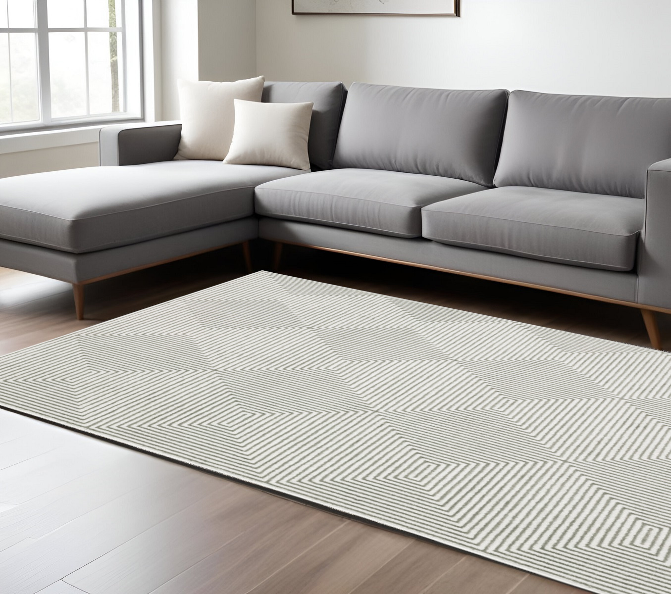Set an inviting tone in your space with this 7-foot x 10-foot gray and white geometric distressed area rug. Ideal for spaces with kids and pets, this rug is stain resistant to help repel dirt and spilled liquids. Built to last, this rug crafted from polyester fibers is known for its durability and long lasting appeal. Rugs are a great way to showcase your style, hide imperfections, warm your home and reduce noise. 78.74-inch h x 116.54-inch w x 0.31-inch d.