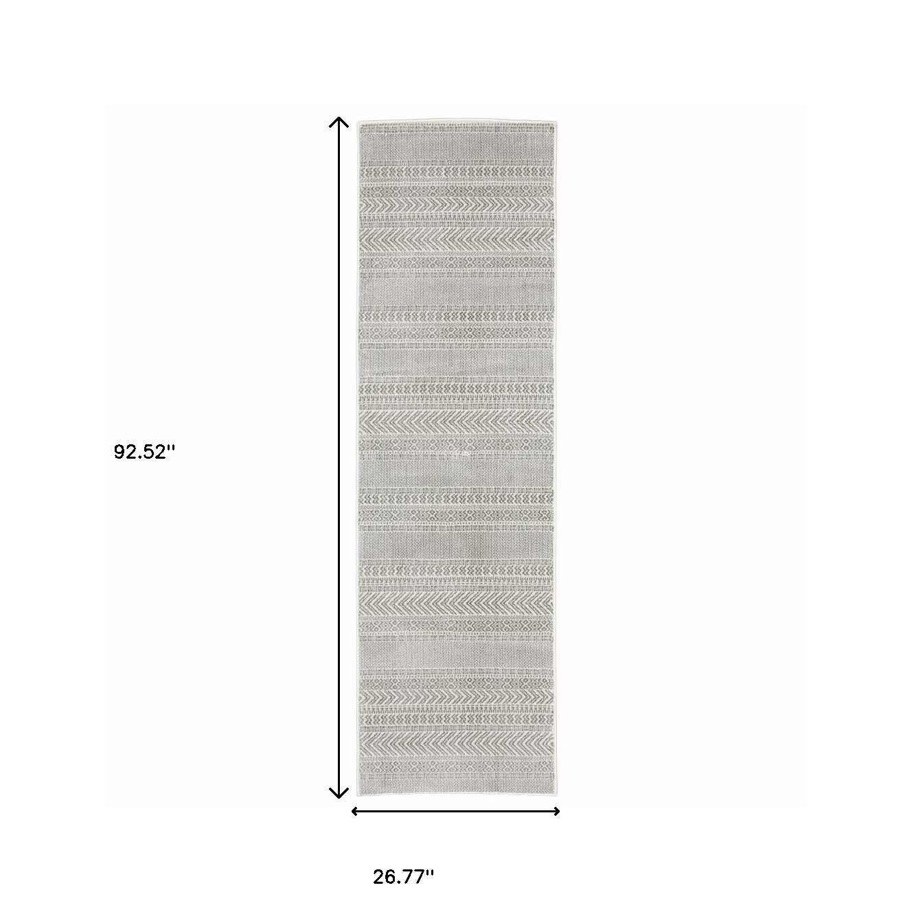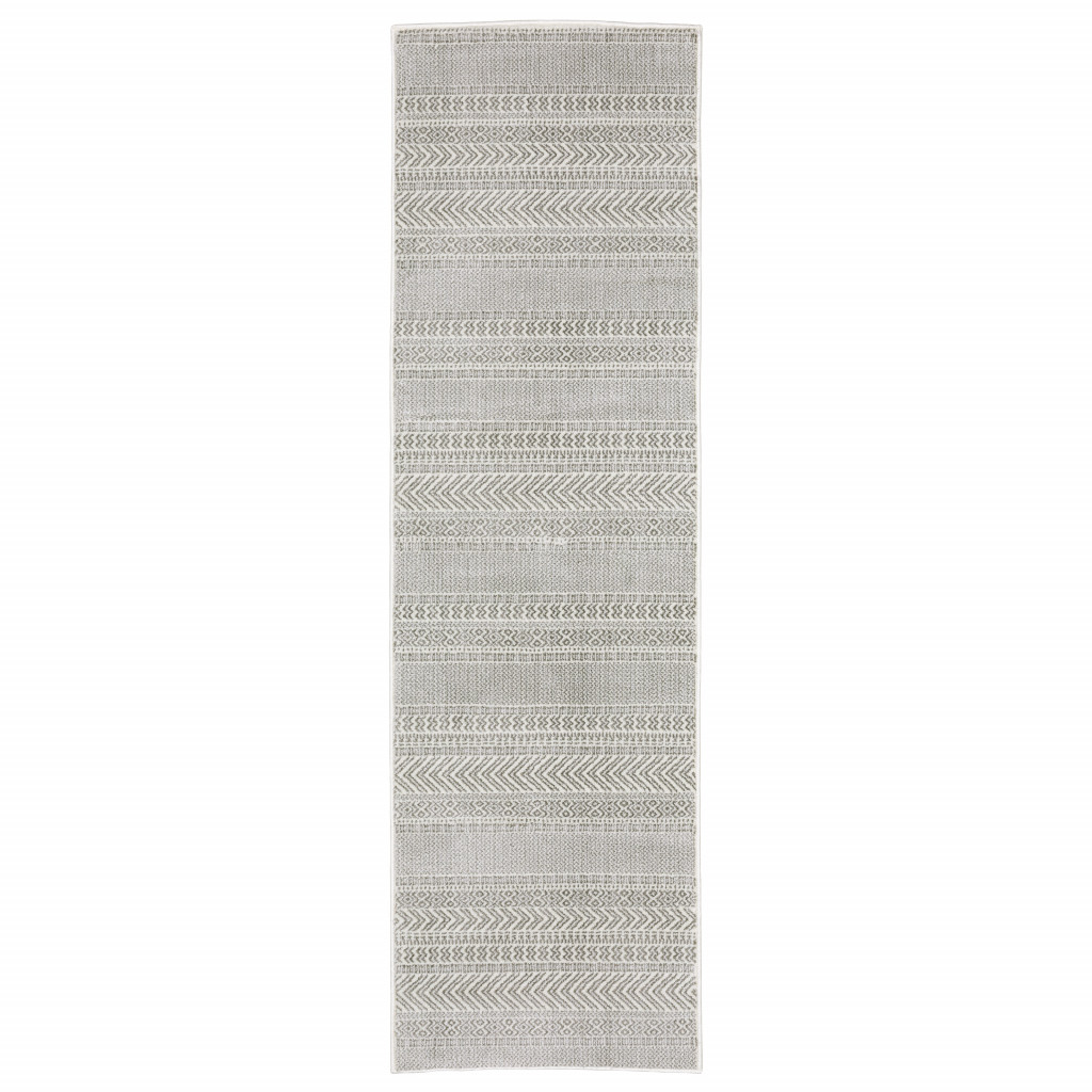 Add great coloration and comfortable texture to your space with this 2' x 8' white and grey geometric power loom stain resistant runner rug. This runner shaped rug features a geometric design in white and grey to give it visual interest. A classic shape marries with good looking design for your space Ideal for spaces with kids and pets, this rug is stain resistant to help repel stains and spilled liquids. Area Rugs help to give warmth and sense of home to your space. 0.31" H x 26.77" W x 92.52" D