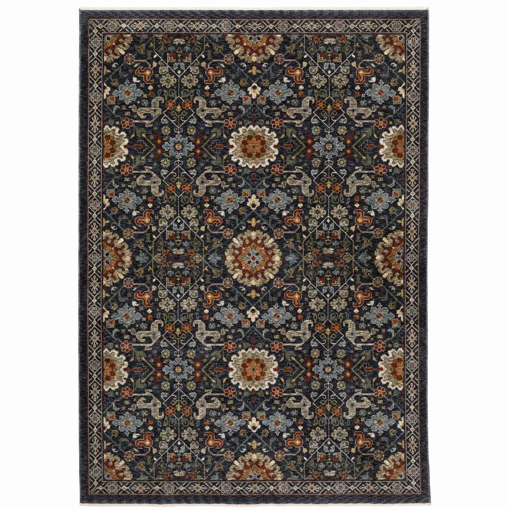 Add great coloration and comfortable texture to your space with this 2' x 3' blue red ivory and gold oriental power loom stain resistant area rug with fringe. This rectangle shaped rug features a oriental design in blue red ivory and gold to give it visual interest. A classic shape marries with good looking design for your space Ideal for spaces with kids and pets, this rug is stain resistant to help repel stains and spilled liquids. Tassel ends bring a timeless and fashionable look to your interior. Place this area rug against a hardwood or tile floor and it will enliven your living space with style and sophistication. 0.24" H x 23.62" W x 36.22" D