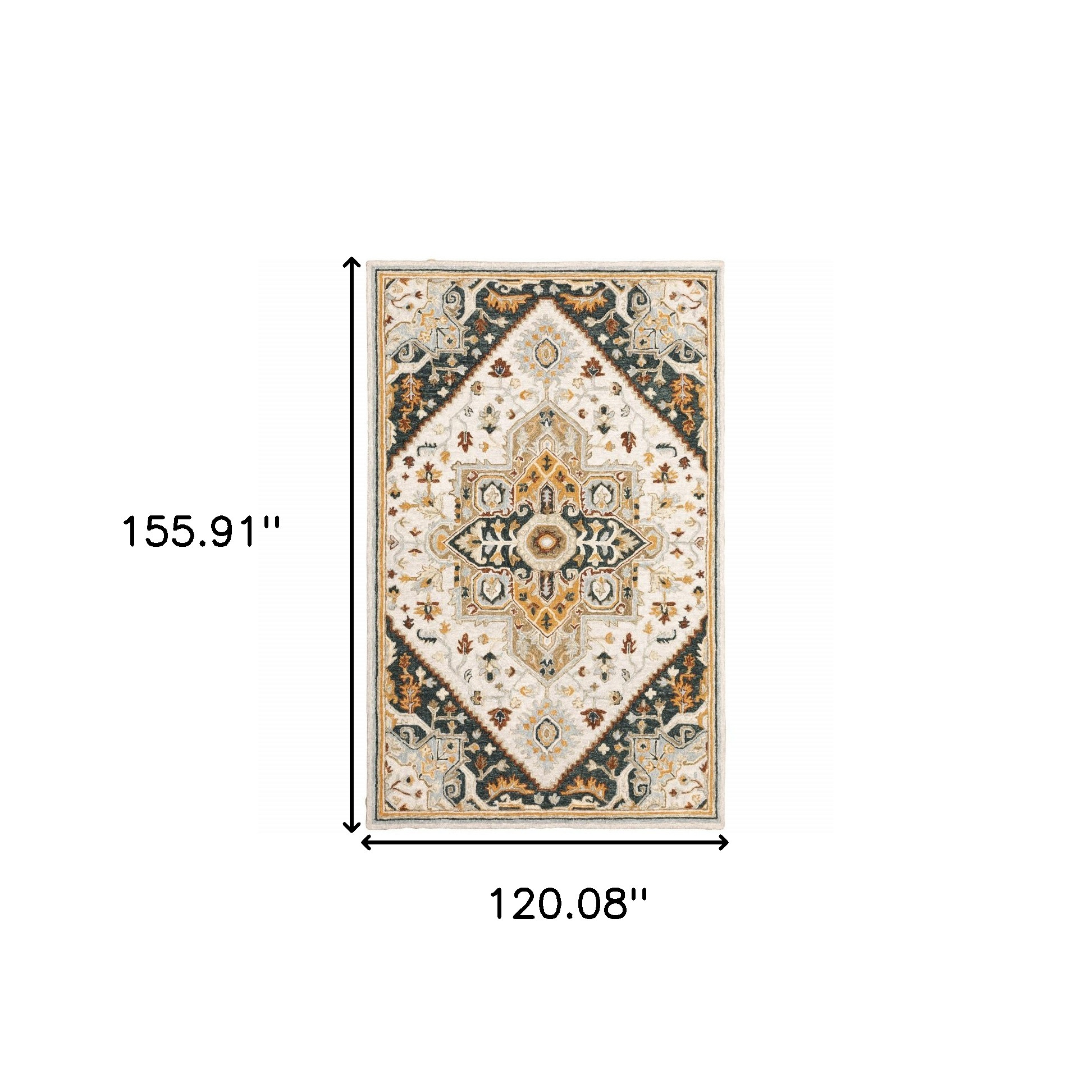 Add great coloration and comfortable texture to your space with this 10' x 13' ivory charcoal gold clay and muted blue oriental tufted handmade stain resistant area rug. This rectangle shaped rug features a oriental design in ivory charcoal gold clay and muted blue to give it visual interest. A classic shape marries with good looking design for your space Ideal for spaces with kids and pets, this rug is stain resistant to help repel stains and spilled liquids. Place this area rug against a hardwood or tile floor and it will enliven your living space with style and sophistication. 0.39" H x 120.08" W x 155.91" D