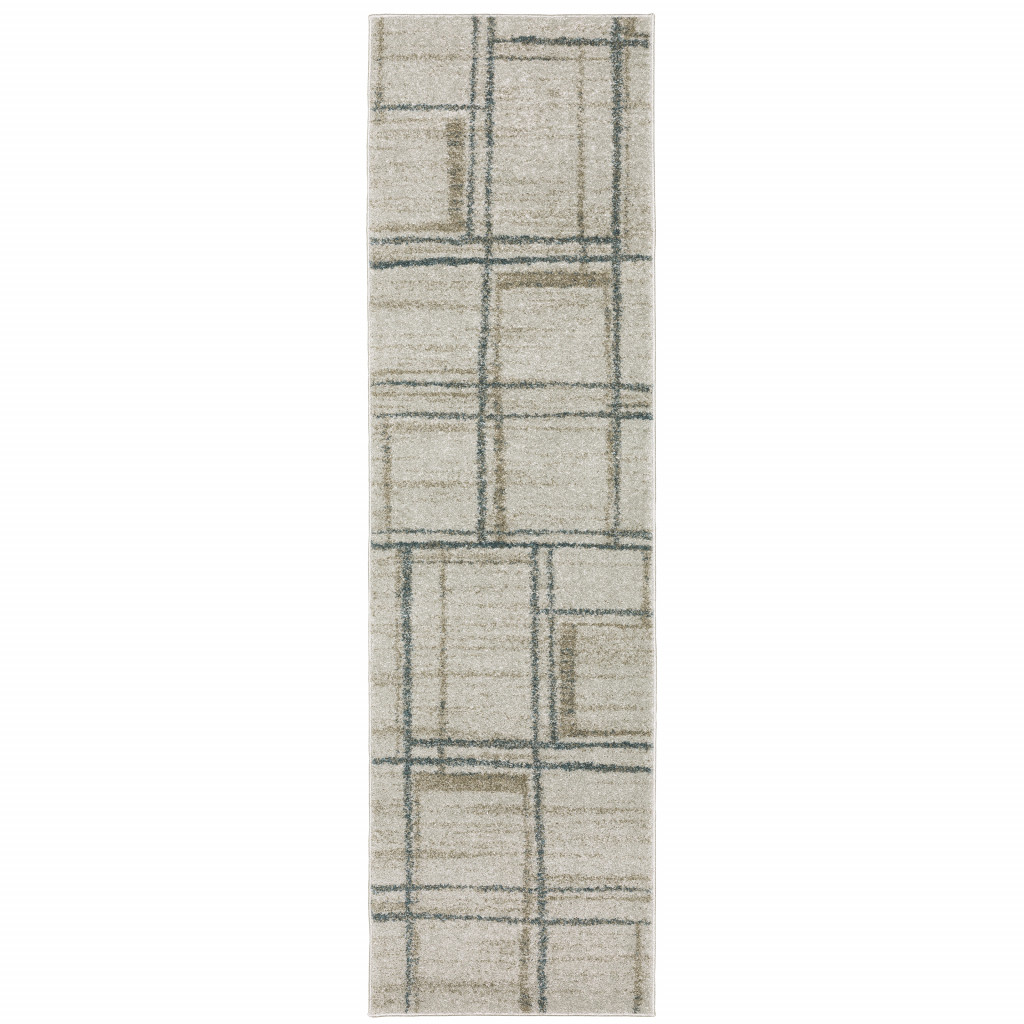 Add great coloration and comfortable texture to your space with this 8-foot beige and blue geometric distressed runner rug. Ideal for spaces with kids and pets, this rug is stain resistant to help repel dirt and spilled liquids. Built to last, this rug crafted from polyester fibers is known for its durability and long lasting appeal. Rugs are a great way to showcase your style, hide imperfections, warm your home and reduce noise. 26.77-inch h x 90.55-inch w x 0.71-inch d.