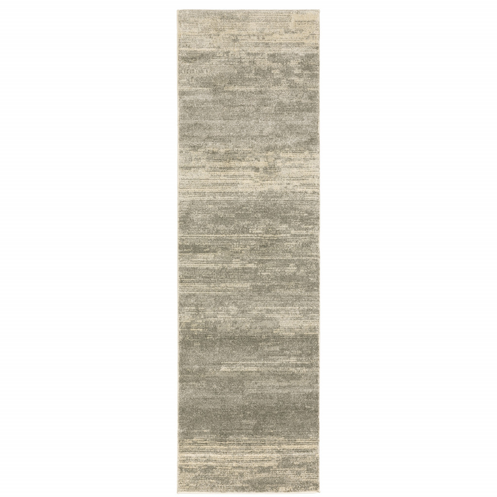 This 2' x 8' grey beige and tan abstract power loom stain resistant runner rug, is a great way to add warmth to a room. This runner shaped rug features a abstract design in grey beige and tan to give it visual interest. A classic shape marries with good looking design for your space Ideal for spaces with kids and pets, this rug is stain resistant to help repel stains and spilled liquids. Place this area rug against a hardwood or tile floor and it will enliven your living space with style and sophistication. 0.78" H x 26.77" W x 90.55" D