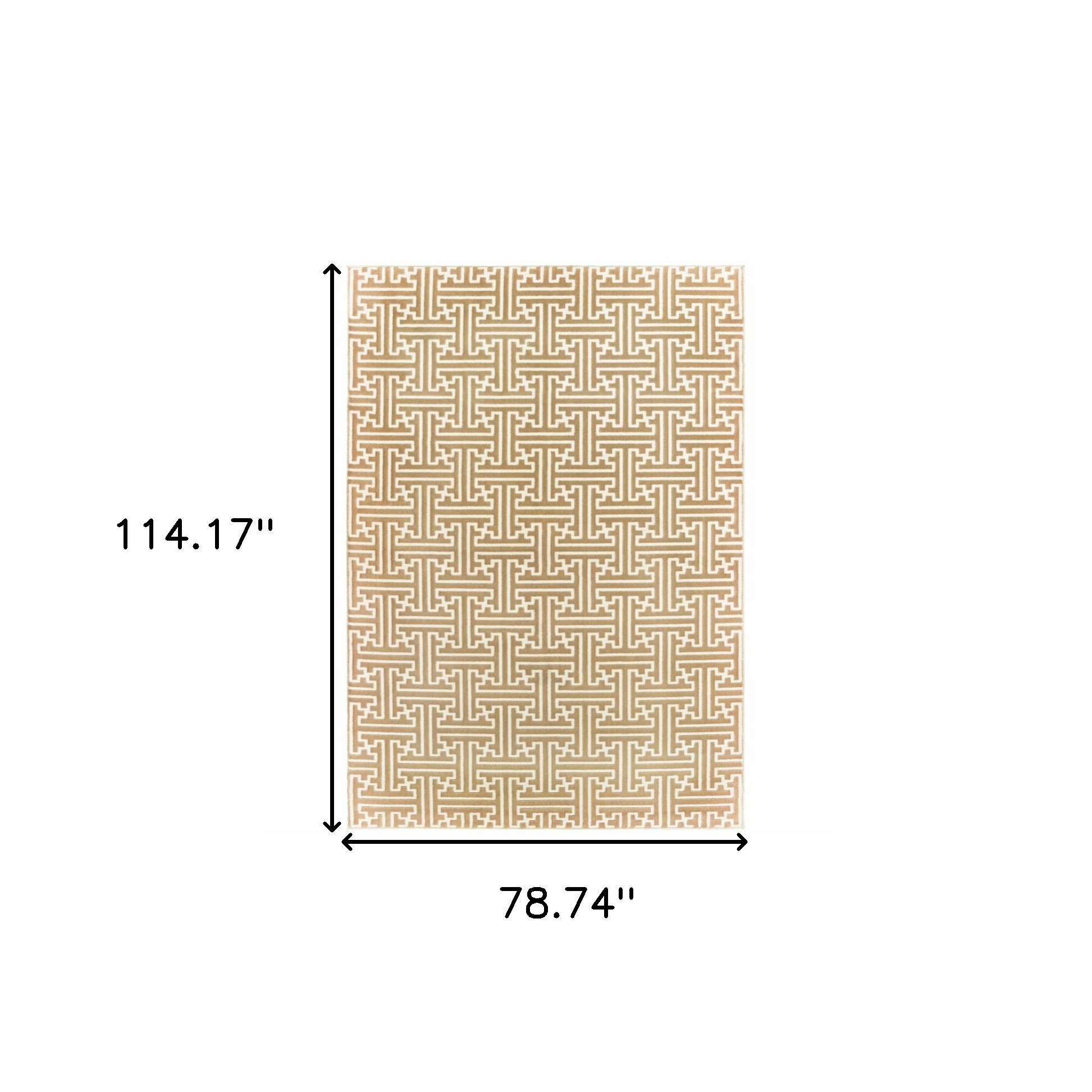 Set an inviting tone in your space with this 7-foot x 10-foot gold and ivory geometric area rug. Ideal for spaces with kids and pets, this rug is stain resistant to help repel dirt and spilled liquids. Built to last, this rug crafted from polypropylene and polyester fibers is known for its durability and long lasting appeal. Rugs are a great way to showcase your style, hide imperfections, warm your home and reduce noise. 78.74-inch h x 114.17-inch w x 0.39-inch d.