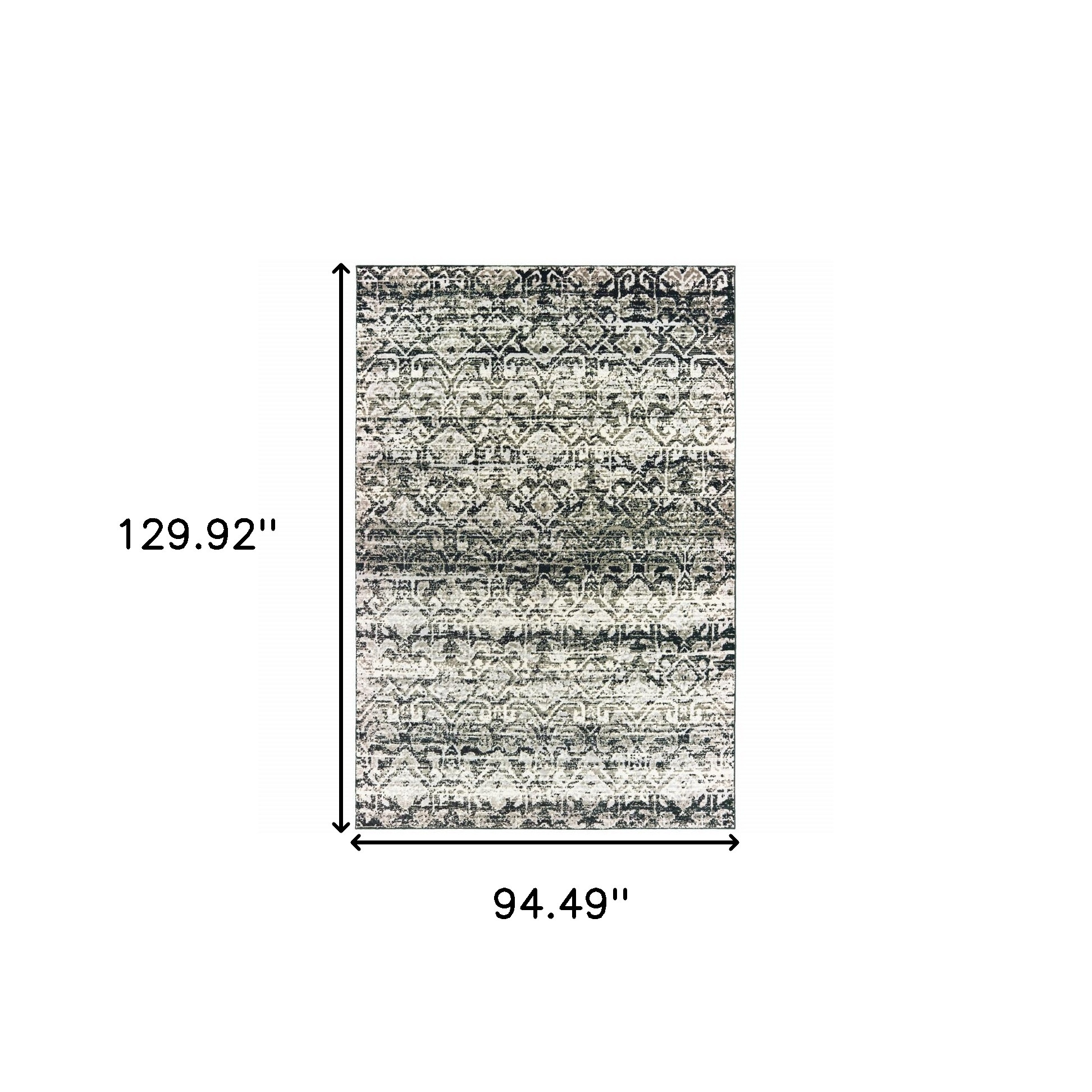 Set an inviting tone in your space with this 8-foot x 11-foot gray and ivory geometric distressed area rug. Ideal for spaces with kids and pets, this rug is stain resistant to help repel dirt and spilled liquids. Built to last, this rug crafted from polypropylene and polyester fibers is known for its durability and long lasting appeal. Rugs are a great way to showcase your style, hide imperfections, warm your home and reduce noise. 94.49-inch h x 129.92-inch w x 0.39-inch d.