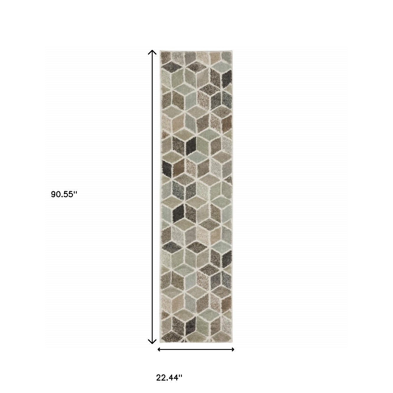 Add great coloration and comfortable texture to your space with this 2' x 8' beige brown grey tan sage and pale blue geometric power loom stain resistant runner rug. This runner shaped rug features a geometric design in beige brown grey tan sage and pale blue to give it visual interest. A classic shape marries with good looking design for your space Ideal for spaces with kids and pets, this rug is stain resistant to help repel stains and spilled liquids. Place this area rug against a hardwood or tile floor and it will enliven your living space with style and sophistication. 1" H x 22.44" W x 90.55" D
