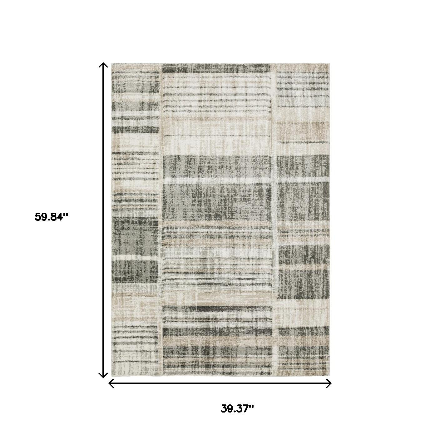 Add some artistry to your room with this 3' x 5' grey charcoal ivory tan brown and beige geometric power loom stain resistant area rug. This rectangle shaped rug features a geometric design in grey charcoal ivory tan brown and beige to give it visual interest. A classic shape marries with good looking design for your space Ideal for spaces with kids and pets, this rug is stain resistant to help repel stains and spilled liquids. Area Rugs help to give warmth and sense of home to your space. 1" H x 39.37" W x 59.84" D