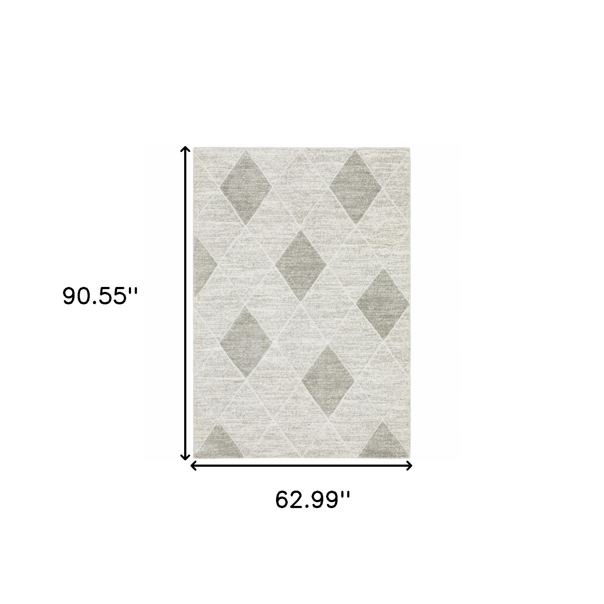 Set an inviting tone in your space with this 5' x 8' grey and ivory geometric power loom stain resistant area rug. This rectangle shaped rug features a geometric design in grey and ivory to give it visual interest. A classic shape marries with good looking design for your space Ideal for spaces with kids and pets, this rug is stain resistant to help repel stains and spilled liquids. Place this area rug against a hardwood or tile floor and it will enliven your living space with style and sophistication. 1" H x 62.99" W x 90.55" D