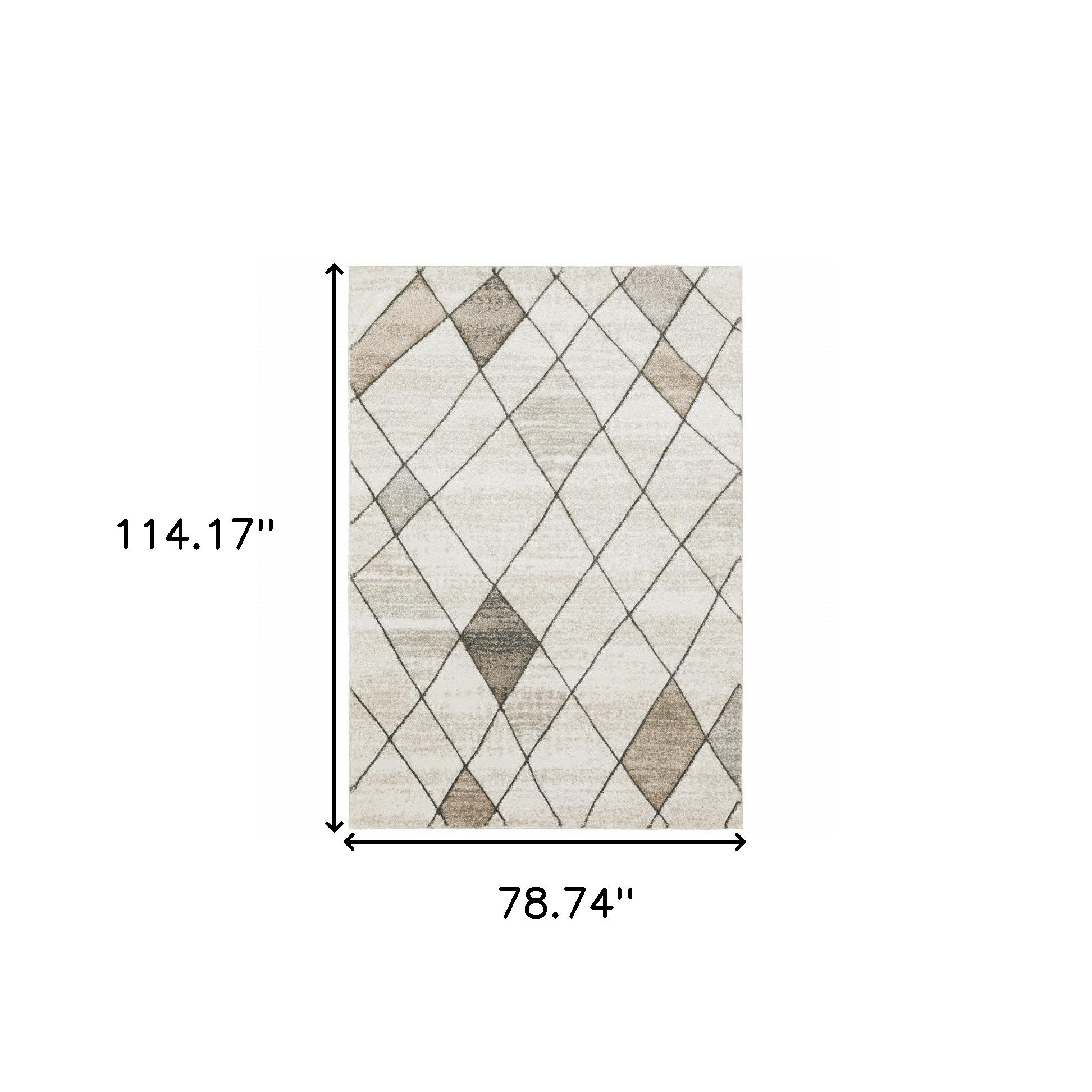 Add some artistry to your room with this 7-foot x 10-foot beige and gray geometric area rug. Ideal for spaces with kids and pets, this rug is stain resistant to help repel dirt and spilled liquids. Built to last, this rug crafted from polypropylene fibers is known for its durability and long lasting appeal. Rugs are a great way to showcase your style, hide imperfections, warm your home and reduce noise. 78.74-inch h x 114.17-inch w x 1-inch d.