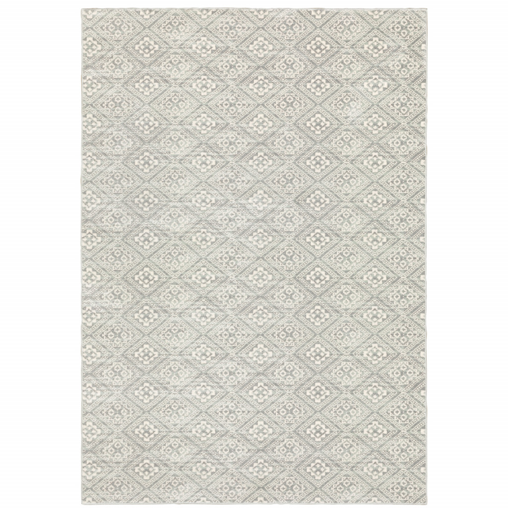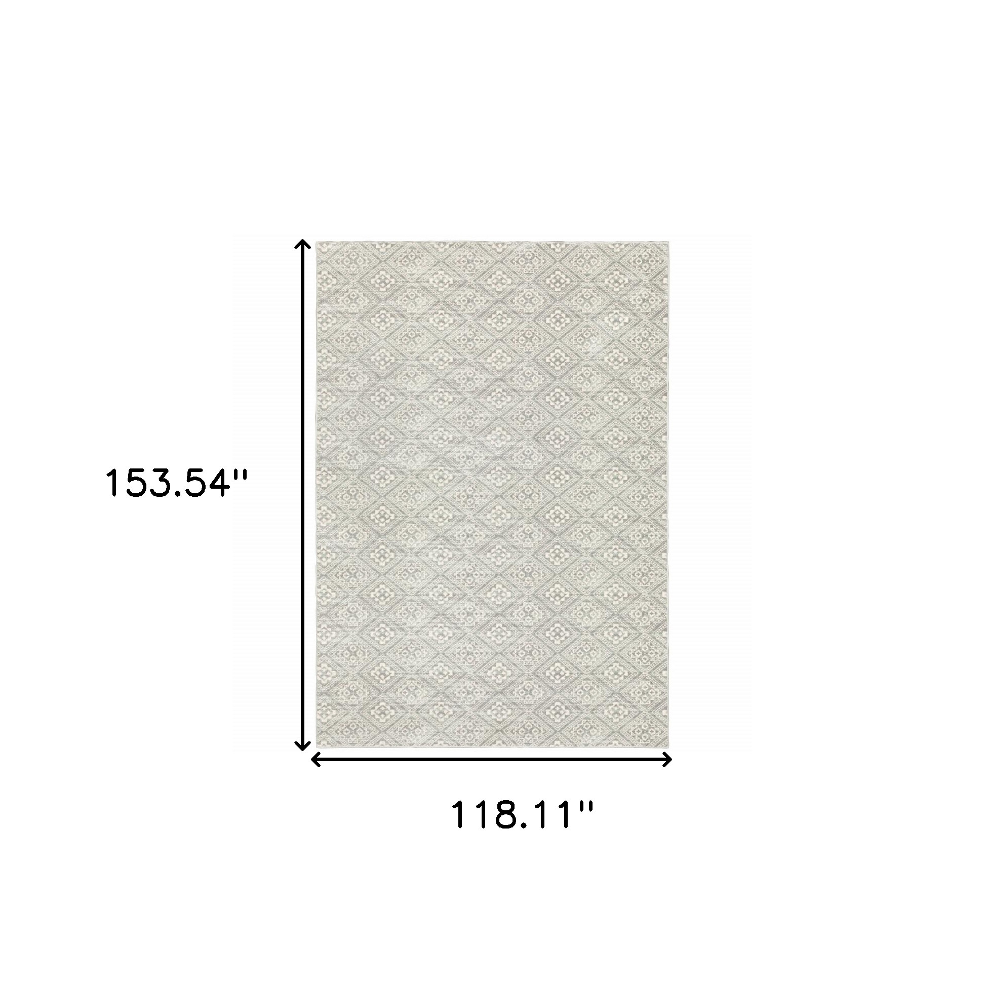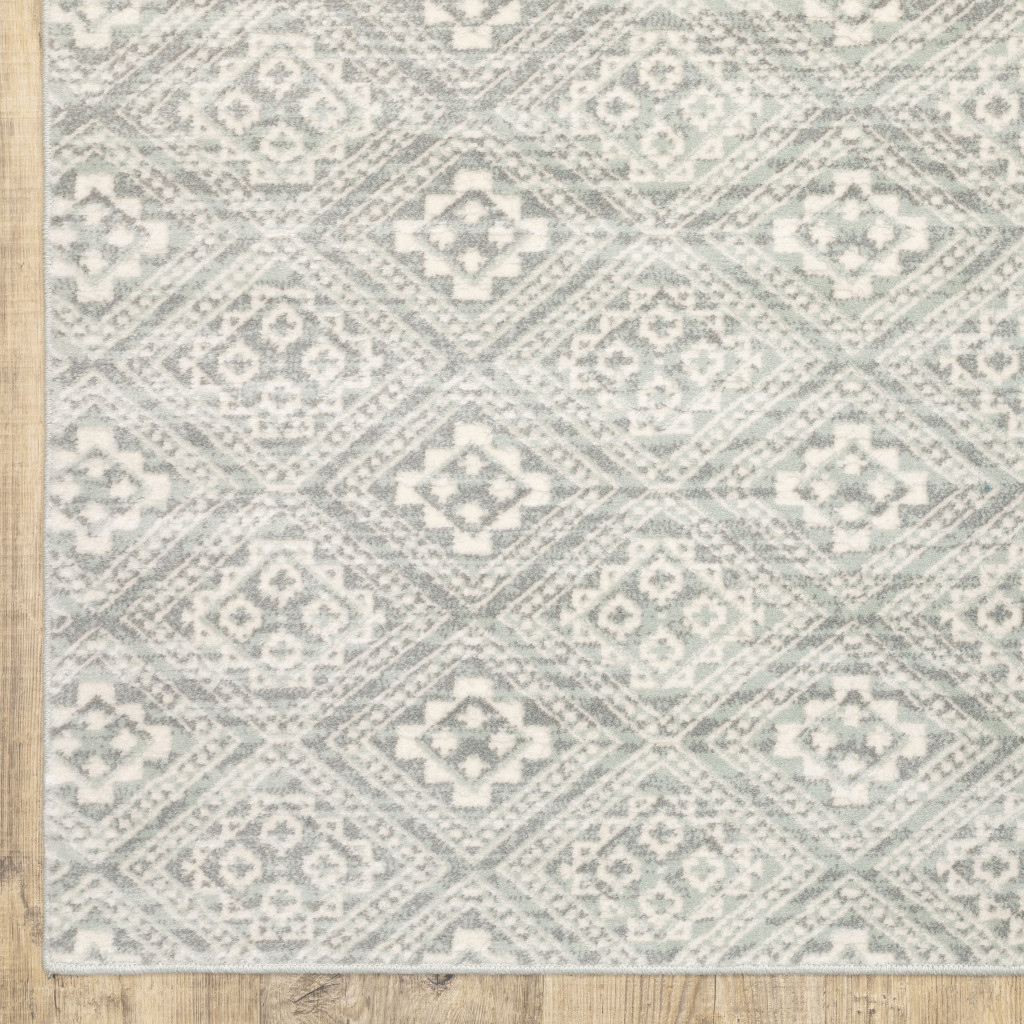Set an inviting tone in your space with this 10-foot x 13-foot light gray and gray geometric distressed area rug. Ideal for spaces with kids and pets, this rug is stain resistant to help repel dirt and spilled liquids. Built to last, this rug crafted from polypropylene and polyester fibers is known for its durability and long lasting appeal. Rugs are a great way to showcase your style, hide imperfections, warm your home and reduce noise. 118.11-inch h x 153.54-inch w x 0.39-inch d.