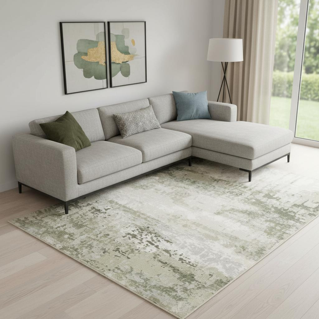 Add some artistry to your room with this 8' x 11' beige grey brown and sage green abstract power loom stain resistant area rug. This rectangle shaped rug features a abstract design in beige grey brown and sage green to give it visual interest. A classic shape marries with good looking design for your space Ideal for spaces with kids and pets, this rug is stain resistant to help repel stains and spilled liquids. Place this area rug against a hardwood or tile floor and it will enliven your living space with style and sophistication. 0.31" H x 94.49" W x 133.86" D