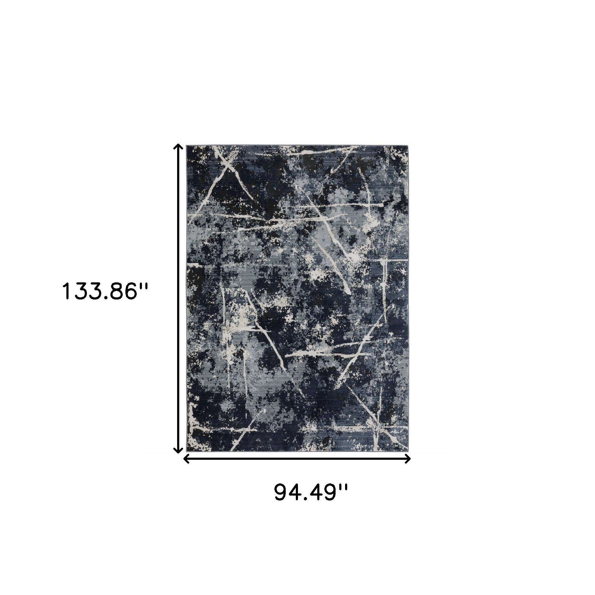 Add some artistry to your room with this 8-foot x 11-foot blue gray and black abstract area rug. Ideal for spaces with kids and pets, this rug is stain resistant to help repel dirt and spilled liquids. Built to last, this rug crafted from polyester fibers is known for its durability and long lasting appeal. Rugs are a great way to showcase your style, hide imperfections, warm your home and reduce noise. This larger sized, contemporary styled rug is ready to create a focal point or statement piece in your room. 94.49-inch h x 133.86-inch w x 0.31-inch d.