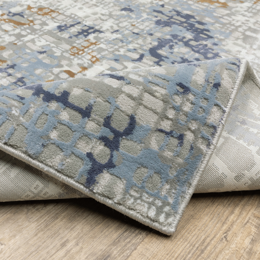 Add some artistry to your room with this 6' x 9' blue ivory grey brown beige and light blue abstract power loom stain resistant area rug. This rectangle shaped rug features a abstract design in blue ivory grey brown beige and light blue to give it visual interest. A classic shape marries with good looking design for your space Ideal for spaces with kids and pets, this rug is stain resistant to help repel stains and spilled liquids. Place this area rug against a hardwood or tile floor and it will enliven your living space with style and sophistication. 1" H x 78.74" W x 114.17" D