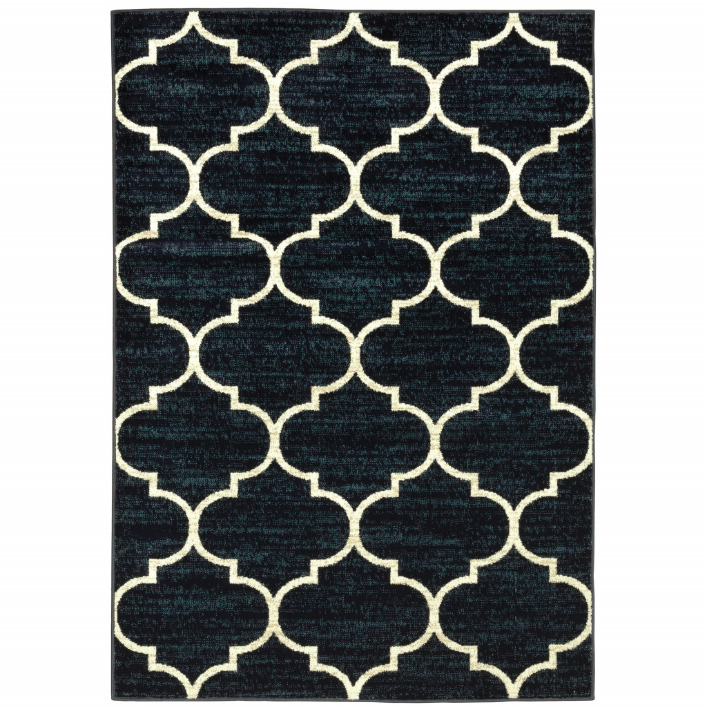 Add great coloration and comfortable texture to your space with this 10' x 13' navy and ivory geometric power loom stain resistant area rug. This rectangle shaped rug features a geometric design in navy and ivory to give it visual interest. A classic shape marries with good looking design for your space Ideal for spaces with kids and pets, this rug is stain resistant to help repel stains and spilled liquids. Place this area rug against a hardwood or tile floor and it will enliven your living space with style and sophistication. 0.31" H x 118.11" W x 153.54" D