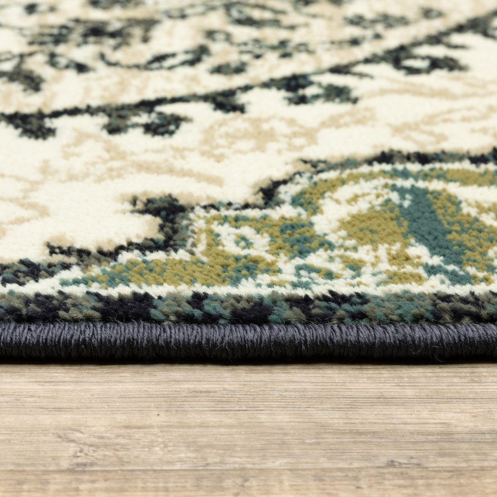 Add great coloration and comfortable texture to your space with this 10' x 13' ivory navy and green oriental power loom stain resistant area rug. This rectangle shaped rug features a oriental design in ivory navy and green to give it visual interest. A classic shape marries with good looking design for your space Ideal for spaces with kids and pets, this rug is stain resistant to help repel stains and spilled liquids. Place this area rug against a hardwood or tile floor and it will enliven your living space with style and sophistication. 0.31" H x 118.11" W x 153.54" D