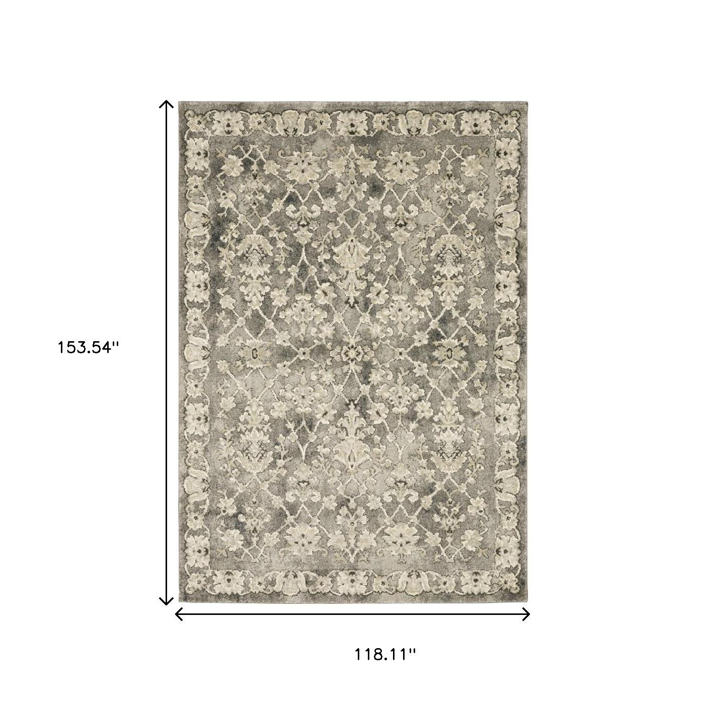 Add great coloration and comfortable texture to your space with this 10' x 13' grey beige tan and brown oriental power loom stain resistant area rug. This rectangle shaped rug features a oriental design in grey beige tan and brown to give it visual interest. A classic shape marries with good looking design for your space Ideal for spaces with kids and pets, this rug is stain resistant to help repel stains and spilled liquids. Area Rugs help to give warmth and sense of home to your space. 0.47" H x 118.11" W x 153.54" D