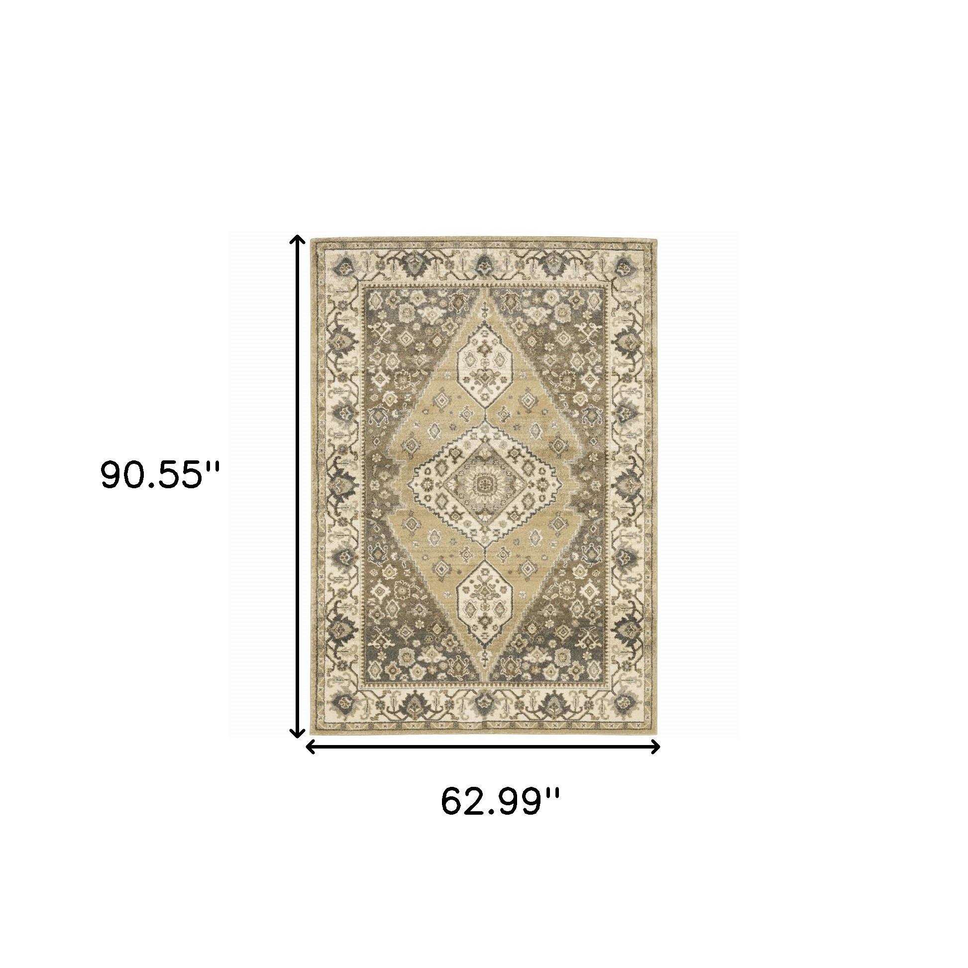 Add great coloration and comfortable texture to your space with this 5' x 8' beige grey tan and charcoal oriental power loom stain resistant area rug. This rectangle shaped rug features a oriental design in beige grey tan and charcoal to give it visual interest. A classic shape marries with good looking design for your space Ideal for spaces with kids and pets, this rug is stain resistant to help repel stains and spilled liquids. Place this area rug against a hardwood or tile floor and it will enliven your living space with style and sophistication. 0.47" H x 62.99" W x 90.55" D