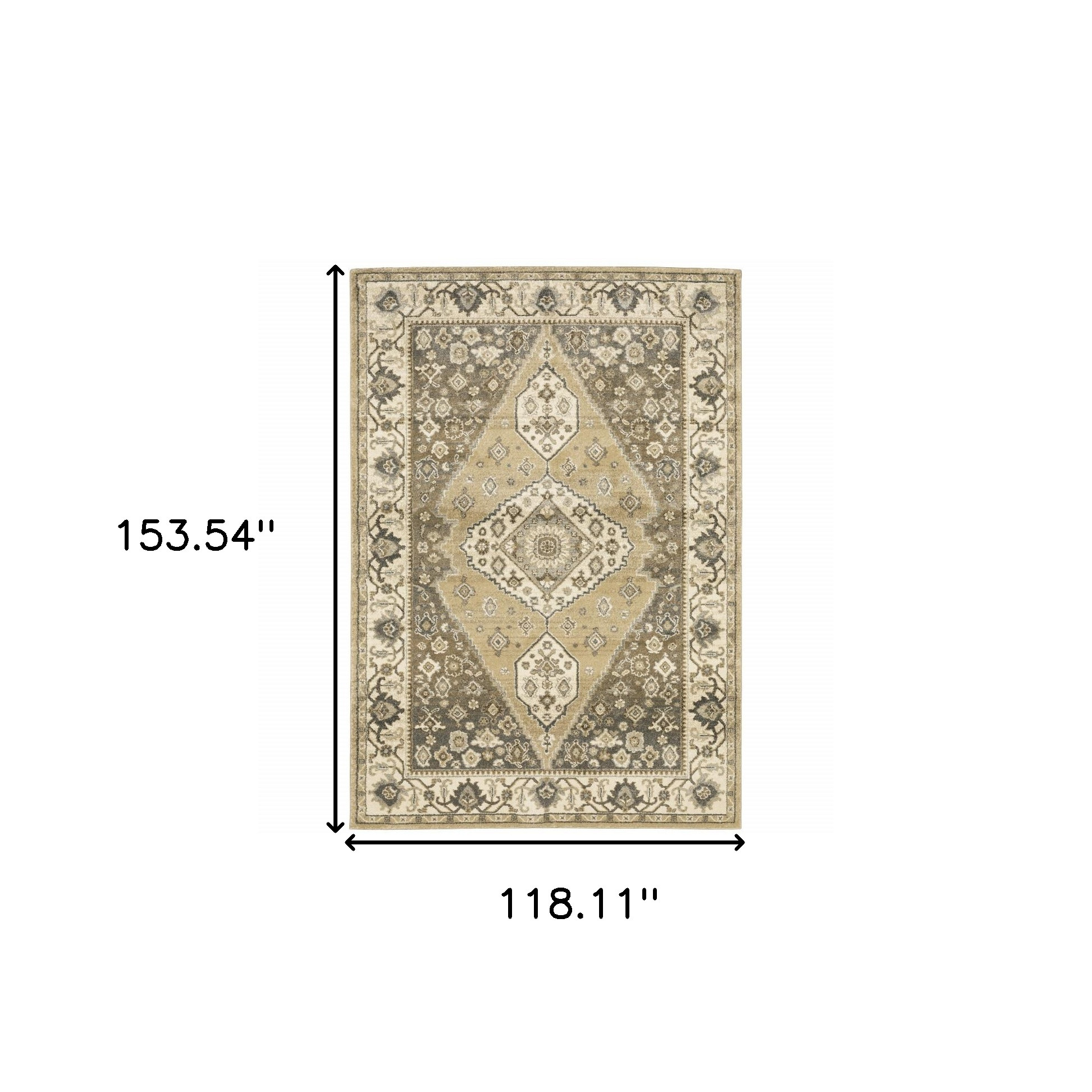 Set an inviting tone in your space with this 10' x 13' beige grey tan and charcoal oriental power loom stain resistant area rug. This rectangle shaped rug features a oriental design in beige grey tan and charcoal to give it visual interest. A classic shape marries with good looking design for your space Ideal for spaces with kids and pets, this rug is stain resistant to help repel stains and spilled liquids. Area Rugs help to give warmth and sense of home to your space. 0.47" H x 118.11" W x 153.54" D