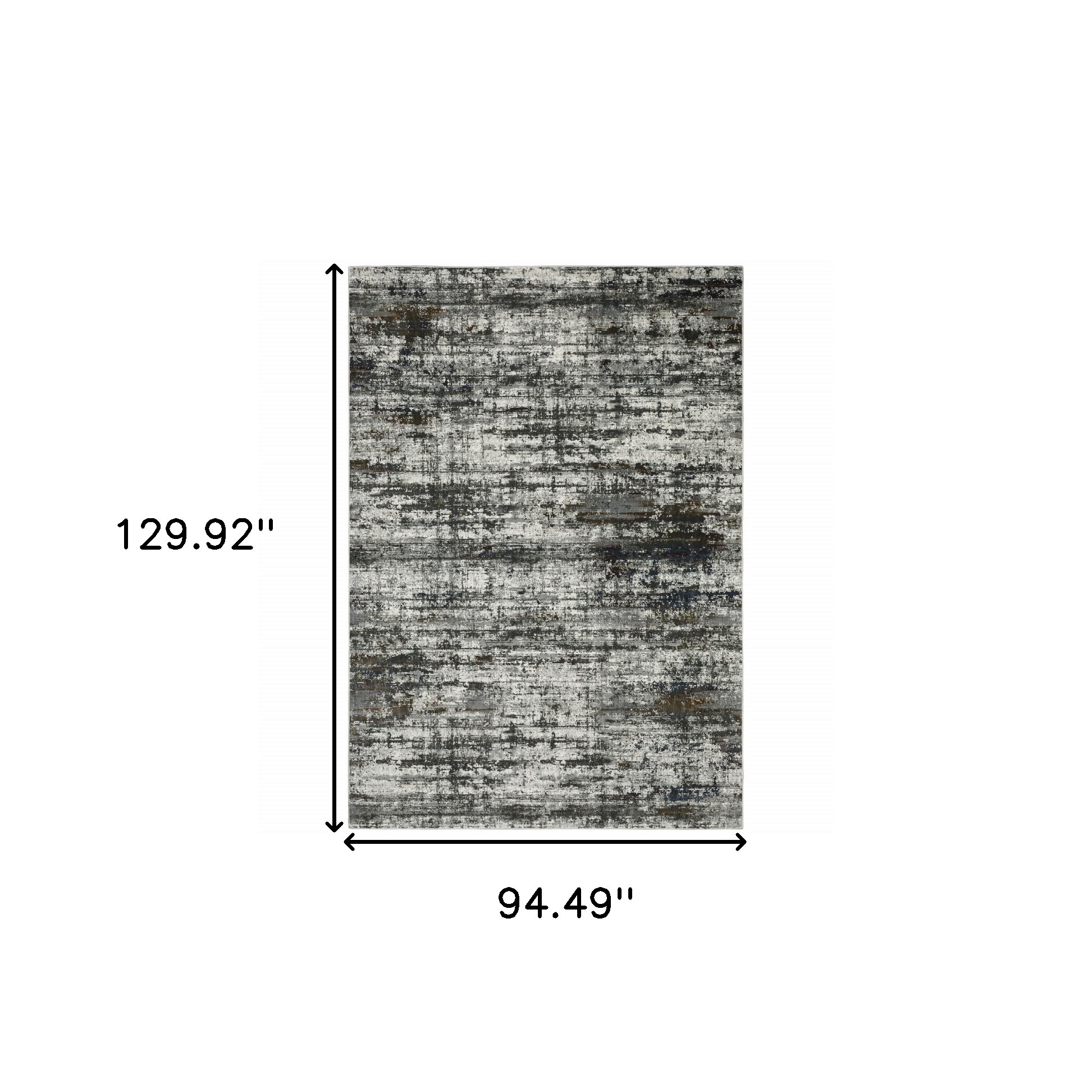 Add some artistry to your room with this 8-foot x 11-foot charcoal and gray abstract distressed area rug. Ideal for spaces with kids and pets, this rug is stain resistant to help repel dirt and spilled liquids. Built to last, this rug crafted from polyester fibers is known for its durability and long lasting appeal. Rugs are a great way to showcase your style, hide imperfections, warm your home and reduce noise. This larger sized, contemporary styled rug is ready to create a focal point or statement piece in your room. 94.49-inch h x 129.92-inch w x 1-inch d.