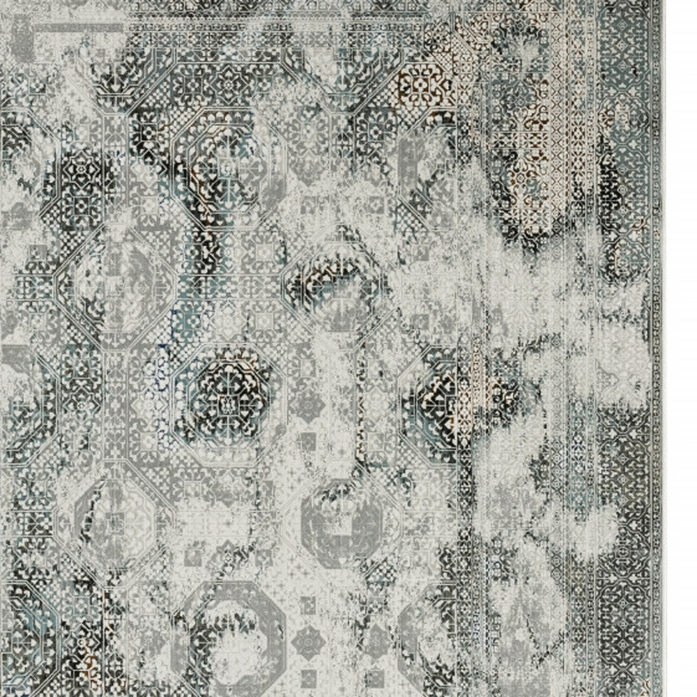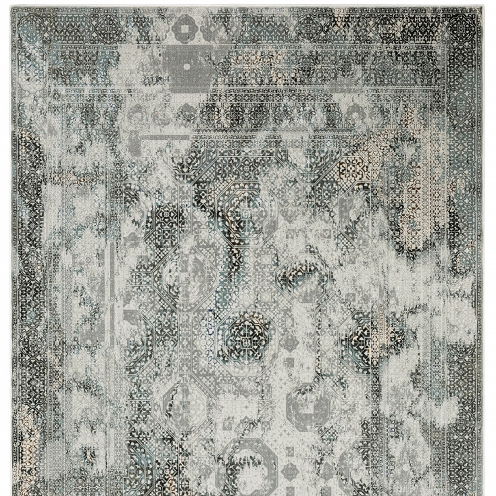 Set an inviting tone in your space with this 10' x 13' ivory grey charcoal blue and rust oriental power loom stain resistant area rug. This rectangle shaped rug features a oriental design in ivory grey charcoal blue and rust to give it visual interest. A classic shape marries with good looking design for your space Ideal for spaces with kids and pets, this rug is stain resistant to help repel stains and spilled liquids. Place this area rug against a hardwood or tile floor and it will enliven your living space with style and sophistication. 1" H x 118.11" W x 153.54" D