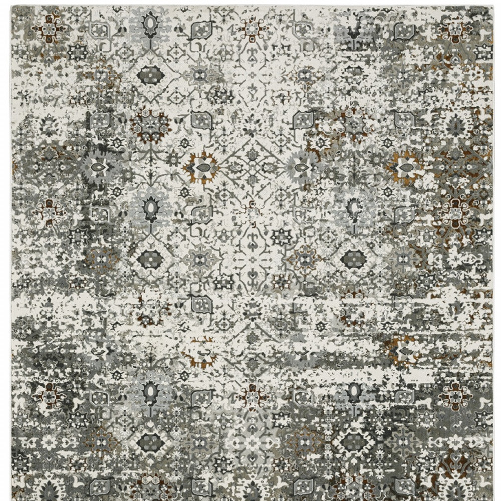 This 8' x 11' ivory grey charcoal rust gold and brown oriental power loom stain resistant area rug, is a great way to add warmth to a room. This rectangle shaped rug features a oriental design in ivory grey charcoal rust gold and brown to give it visual interest. A classic shape marries with good looking design for your space Ideal for spaces with kids and pets, this rug is stain resistant to help repel stains and spilled liquids. Area Rugs help to give warmth and sense of home to your space. 1" H x 94.49" W x 129.92" D