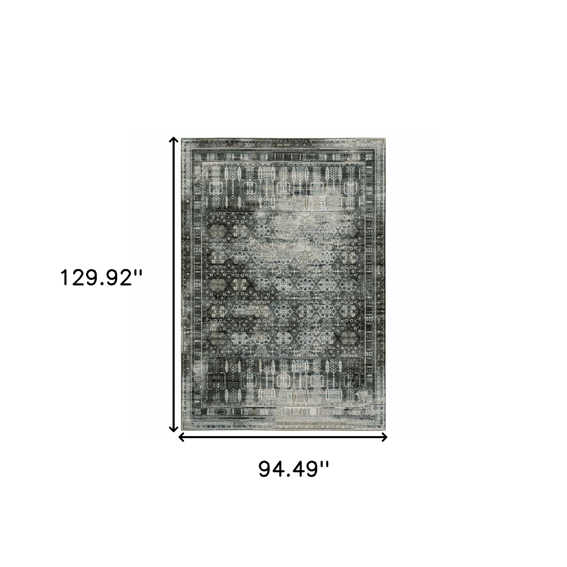 Add some artistry to your room with this 8-foot x 11-foot charcoal and gray oriental distressed area rug. Ideal for spaces with kids and pets, this rug is stain resistant to help repel dirt and spilled liquids. Built to last, this rug crafted from polyester fibers is known for its durability and long lasting appeal. Rugs are a great way to showcase your style, hide imperfections, warm your home and reduce noise. 94.49-inch h x 129.92-inch w x 1-inch d.