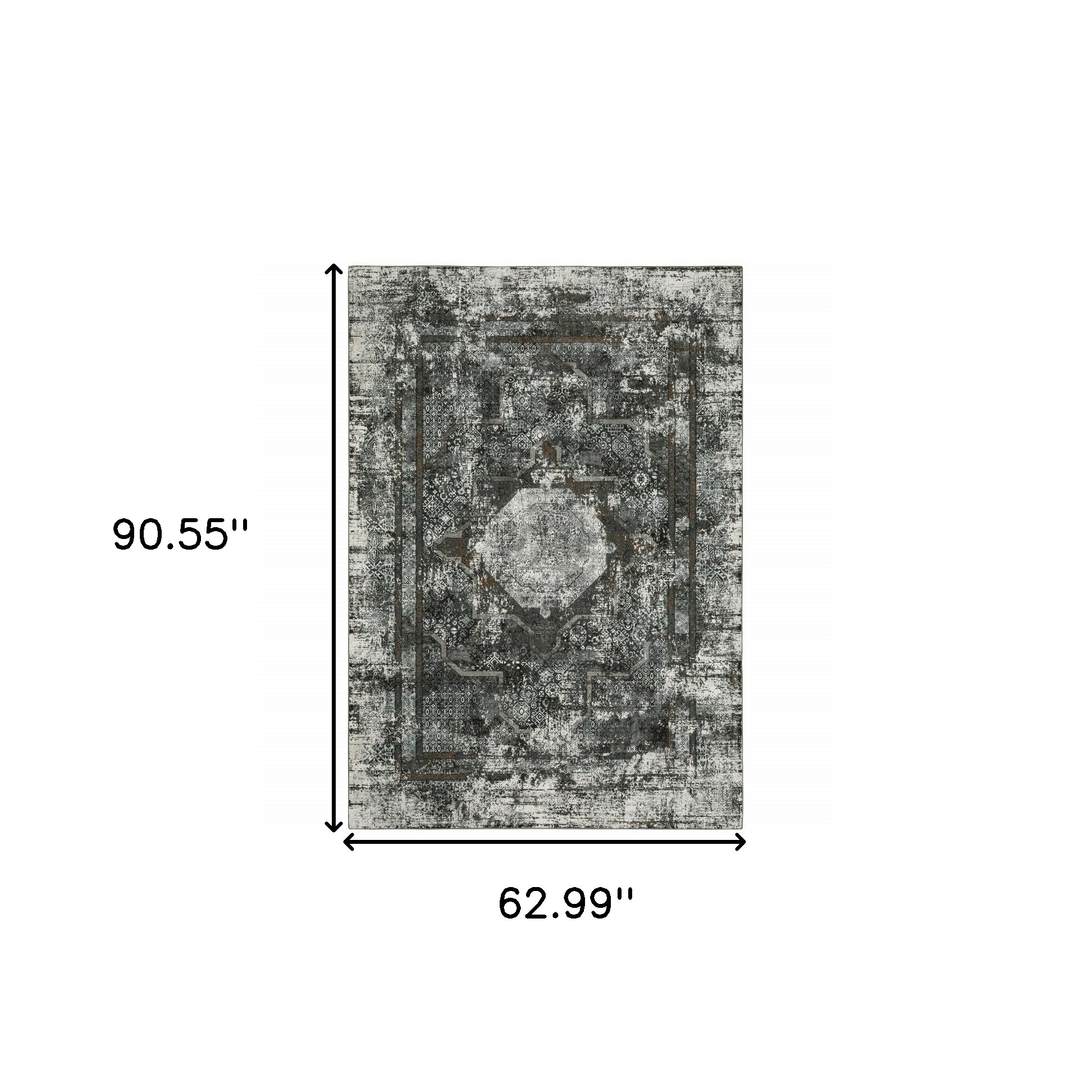 Add great coloration and comfortable texture to your space with this 5-foot x 8-foot charcoal and gray oriental distressed area rug. Ideal for spaces with kids and pets, this rug is stain resistant to help repel dirt and spilled liquids. Built to last, this rug crafted from polyester fibers is known for its durability and long lasting appeal. Rugs are a great way to showcase your style, hide imperfections, warm your home and reduce noise. 62.99-inch h x 90.55-inch w x 1-inch d.