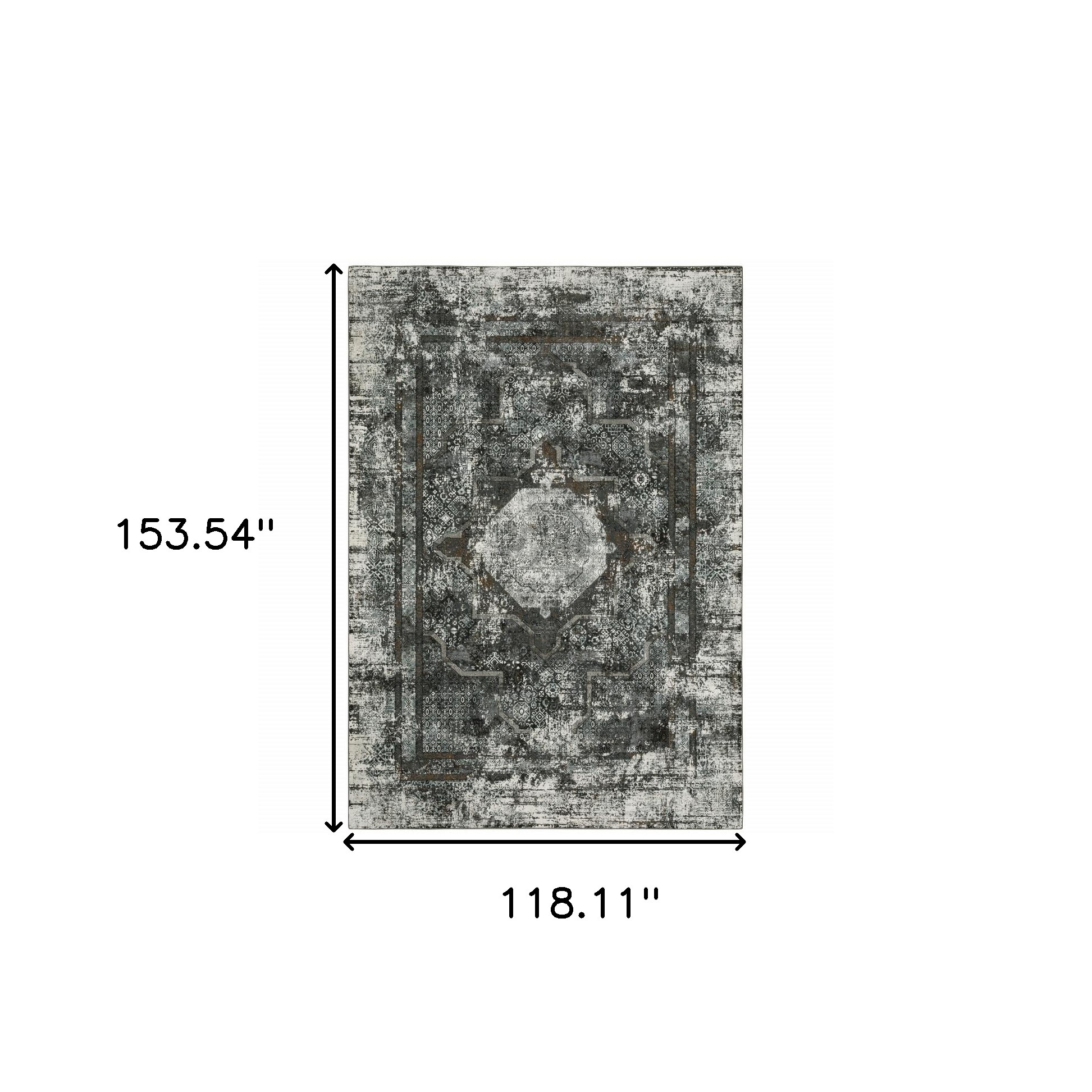 This 10' x 13' charcoal rust grey blue ivory and brown oriental power loom stain resistant area rug, is a great way to add warmth to a room. This rectangle shaped rug features a oriental design in charcoal rust grey blue ivory and brown to give it visual interest. A classic shape marries with good looking design for your space Ideal for spaces with kids and pets, this rug is stain resistant to help repel stains and spilled liquids. Place this area rug against a hardwood or tile floor and it will enliven your living space with style and sophistication. 1" H x 118.11" W x 153.54" D