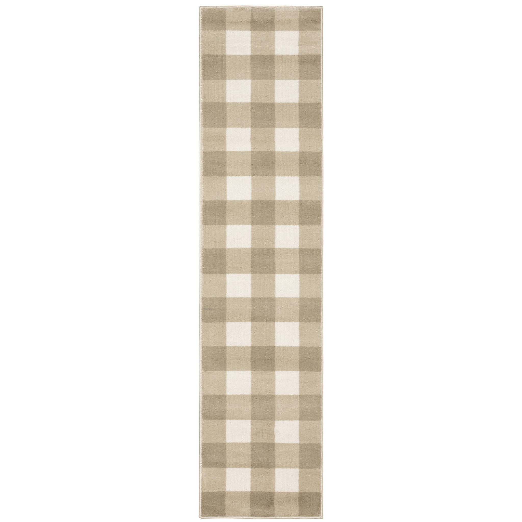 This 2' x 8' beige and ivory geometric power loom stain resistant runner rug, is a great way to add warmth to a room. This runner shaped rug features a geometric design in beige and ivory to give it visual interest. A classic shape marries with good looking design for your space Ideal for spaces with kids and pets, this rug is stain resistant to help repel stains and spilled liquids. Area Rugs help to give warmth and sense of home to your space. 0.39" H x 21.65" W x 90.55" D