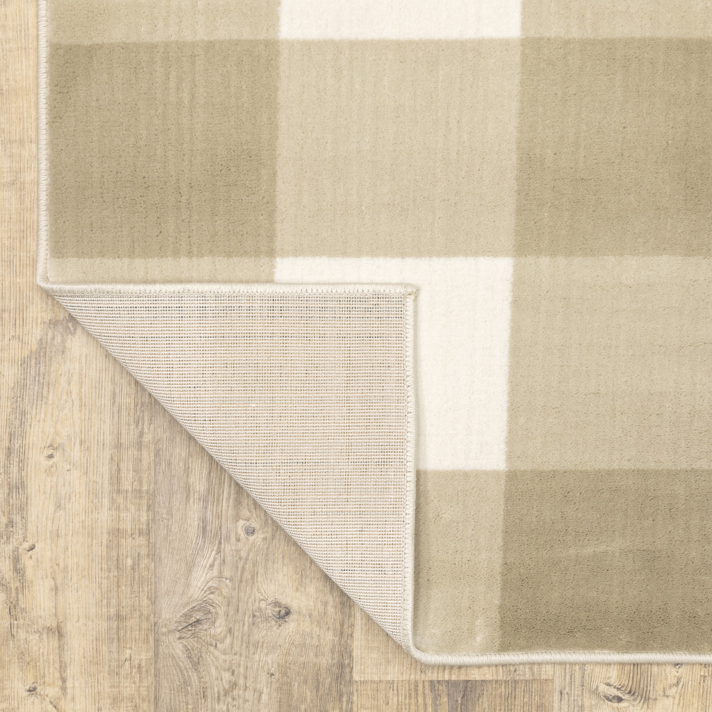 Set an inviting tone in your space with this 8' x 10' beige and ivory geometric power loom stain resistant area rug. This rectangle shaped rug features a geometric design in beige and ivory to give it visual interest. A classic shape marries with good looking design for your space Ideal for spaces with kids and pets, this rug is stain resistant to help repel stains and spilled liquids. Area Rugs help to give warmth and sense of home to your space. 0.39" H x 94.49" W x 120.08" D