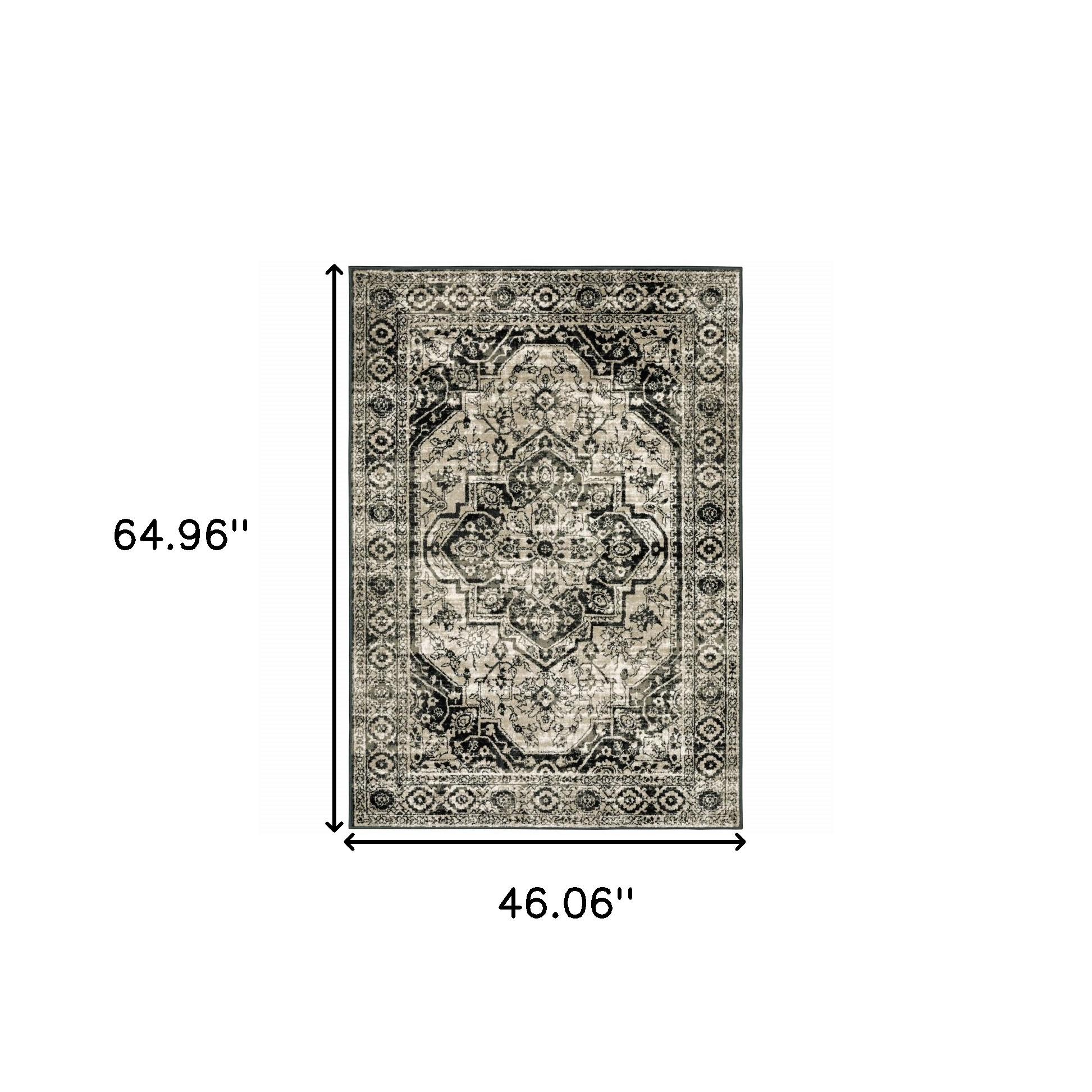 Add great coloration and comfortable texture to your space with this 4' x 6' black grey tan and ivory oriental power loom stain resistant area rug. This rectangle shaped rug features a oriental design in black grey tan and ivory to give it visual interest. A classic shape marries with good looking design for your space Ideal for spaces with kids and pets, this rug is stain resistant to help repel stains and spilled liquids. Area Rugs help to give warmth and sense of home to your space. 0.39" H x 46.06" W x 64.96" D