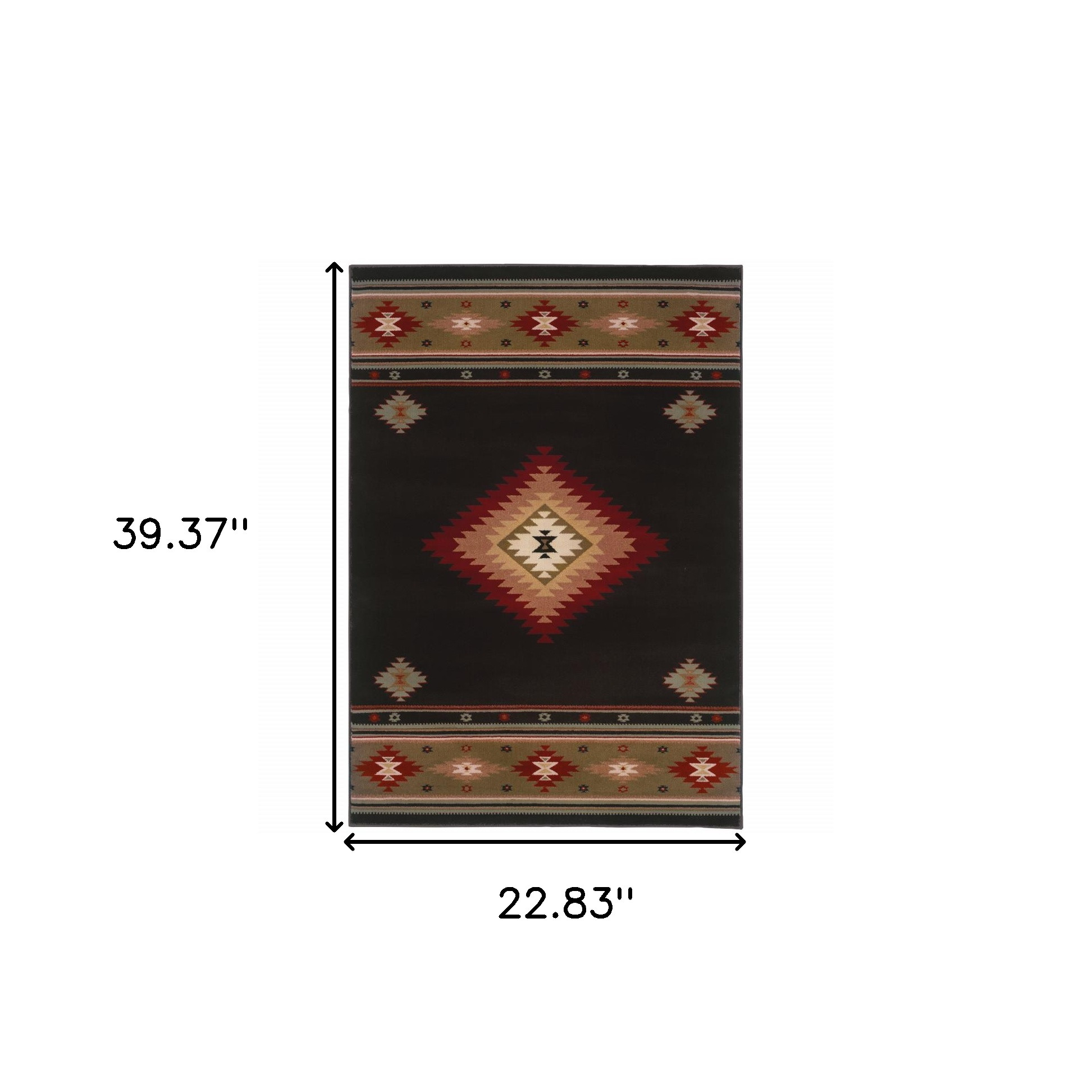 Add some artistry to your room with this 2-foot x 3-foot black and green southwestern area rug. Ideal for spaces with kids and pets, this rug is stain resistant to help repel dirt and spilled liquids. Built to last, this rug crafted from polypropylene fibers is known for its durability and long lasting appeal. Rugs are a great way to showcase your style, hide imperfections, warm your home and reduce noise. 22.83-inch h x 39.37-inch w x 0.43-inch d.