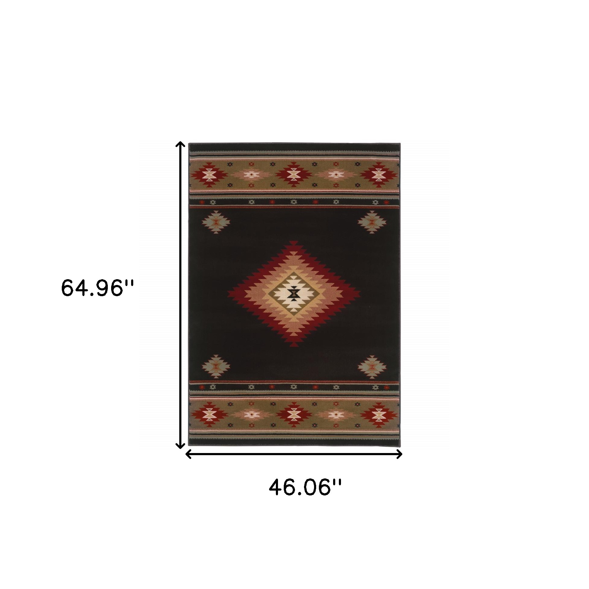 Add great coloration and comfortable texture to your space with this 4' x 6' black and green southwestern power loom stain resistant area rug. This rectangle shaped rug features a southwestern design in black and green to give it visual interest. A classic shape marries with good looking design for your space Ideal for spaces with kids and pets, this rug is stain resistant to help repel stains and spilled liquids. Area Rugs help to give warmth and sense of home to your space. 0.43" H x 46.06" W x 64.96" D