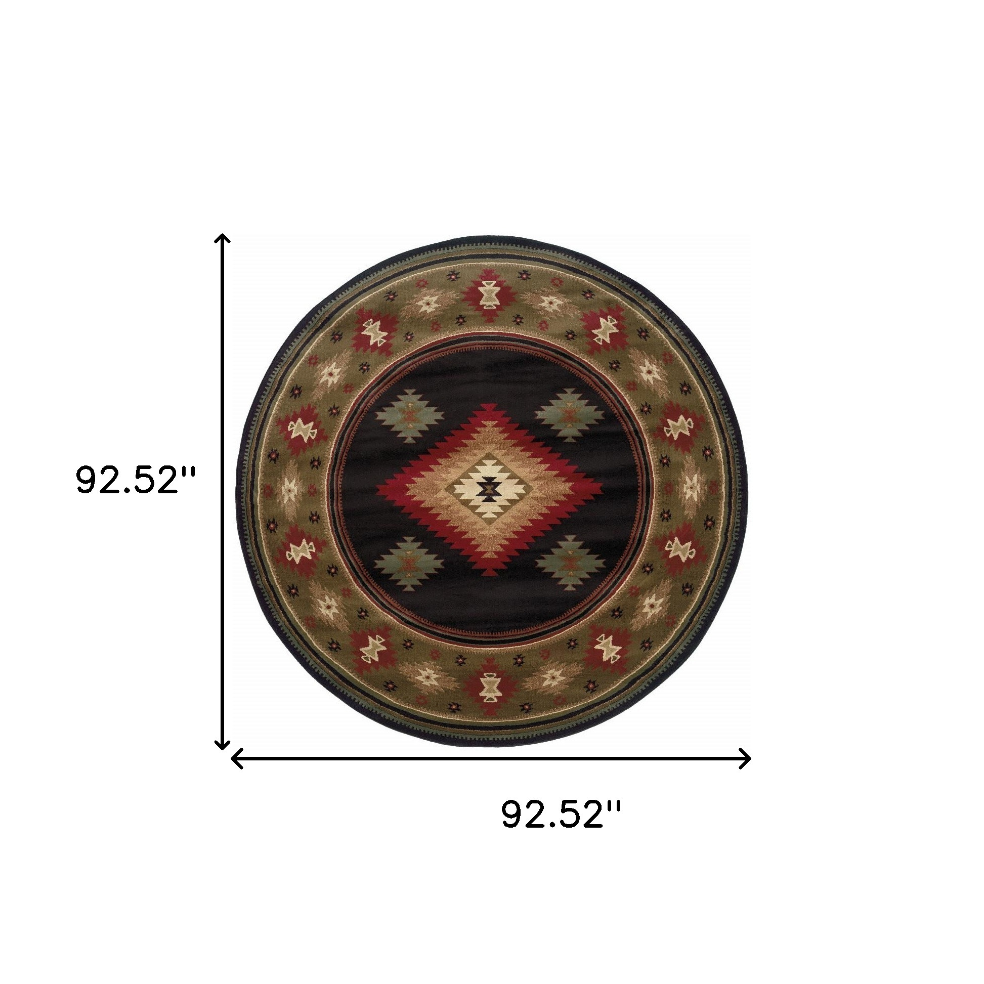 Add great coloration and comfortable texture to your space with this 8' black round southwestern power loom stain resistant area rug. This geometric round shaped rug features a southwestern pattern in black that combines a good looking print with a unique and updated shape. The mix of shape, color, and design gives this rug refreshing visual interest. The coloration of this rug infuses an updated and modern vibe into your space. Ideal for spaces with kids and pets, this rug is stain resistant to help repel stains and spilled liquids. Area Rugs help to give warmth and sense of home to your space. 0.43" H x 92.52" W x 92.52" D