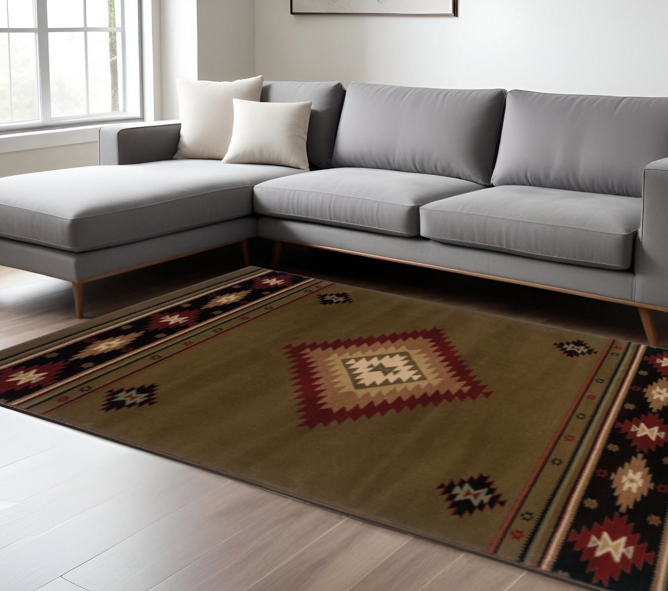 Set an inviting tone in your space with this 10' x 13' green southwestern power loom stain resistant area rug. This rectangle shaped rug features a southwestern design in green to give it visual interest. A classic shape marries with good looking design for your space Ideal for spaces with kids and pets, this rug is stain resistant to help repel stains and spilled liquids. Place this area rug against a hardwood or tile floor and it will enliven your living space with style and sophistication. 0.43" H x 120.08" W x 155.91" D