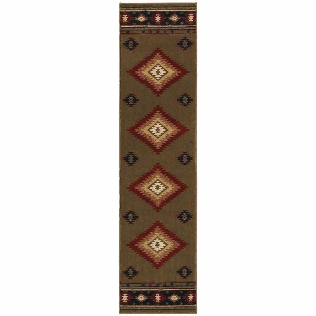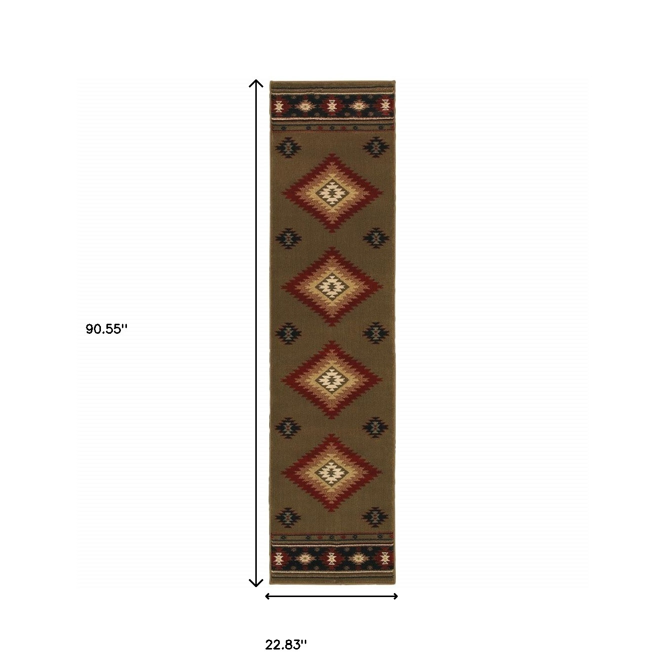 Set an inviting tone in your space with this 2' x 8' green southwestern power loom stain resistant runner rug. This runner shaped rug features a southwestern design in green to give it visual interest. A classic shape marries with good looking design for your space Ideal for spaces with kids and pets, this rug is stain resistant to help repel stains and spilled liquids. Area Rugs help to give warmth and sense of home to your space. 0.43" H x 22.83" W x 90.55" D