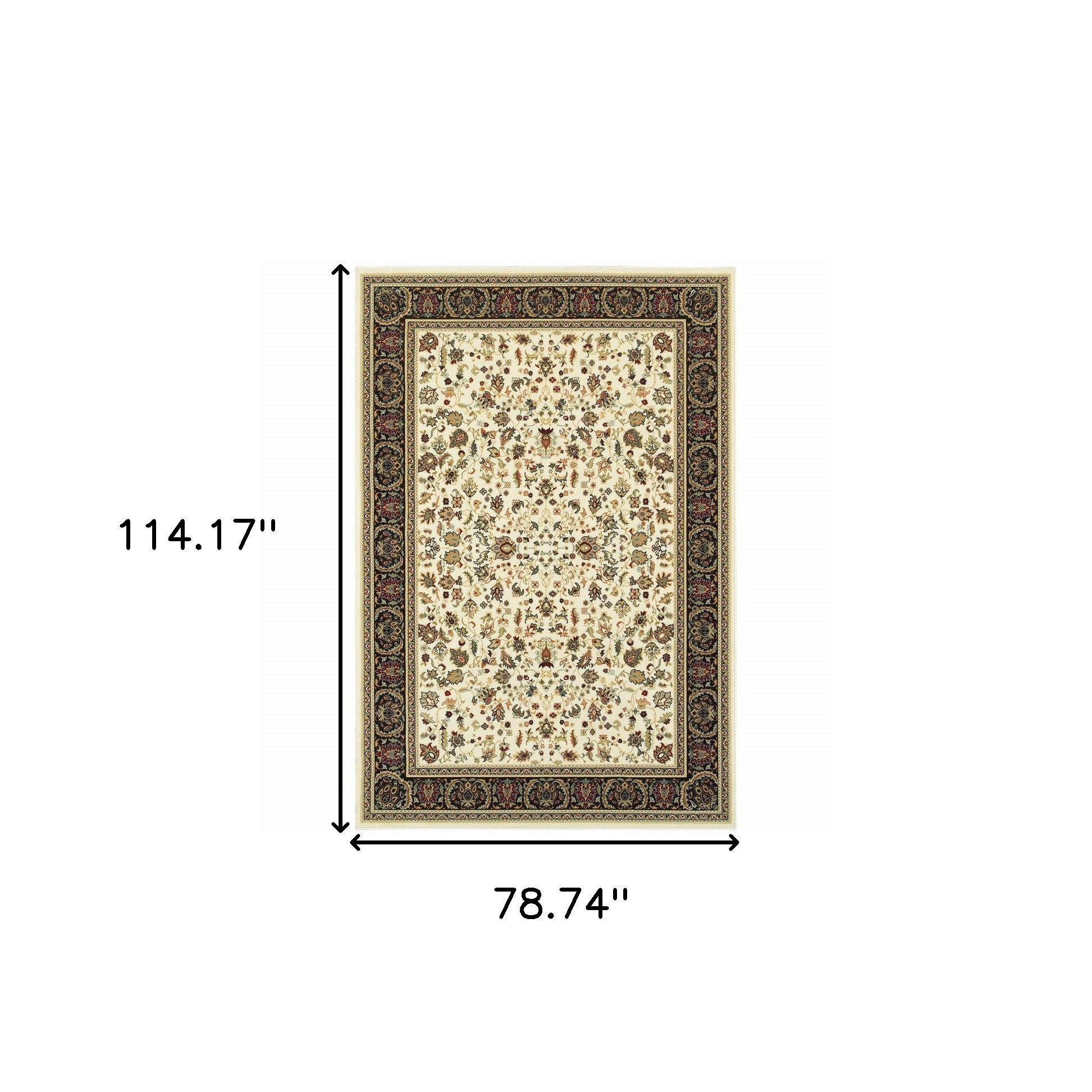 Set an inviting tone in your space with this 6' x 9' ivory and black oriental power loom stain resistant area rug. This rectangle shaped rug features a oriental design in ivory and black to give it visual interest. A classic shape marries with good looking design for your space Ideal for spaces with kids and pets, this rug is stain resistant to help repel stains and spilled liquids. Place this area rug against a hardwood or tile floor and it will enliven your living space with style and sophistication. 0.31" H x 78.74" W x 114.17" D