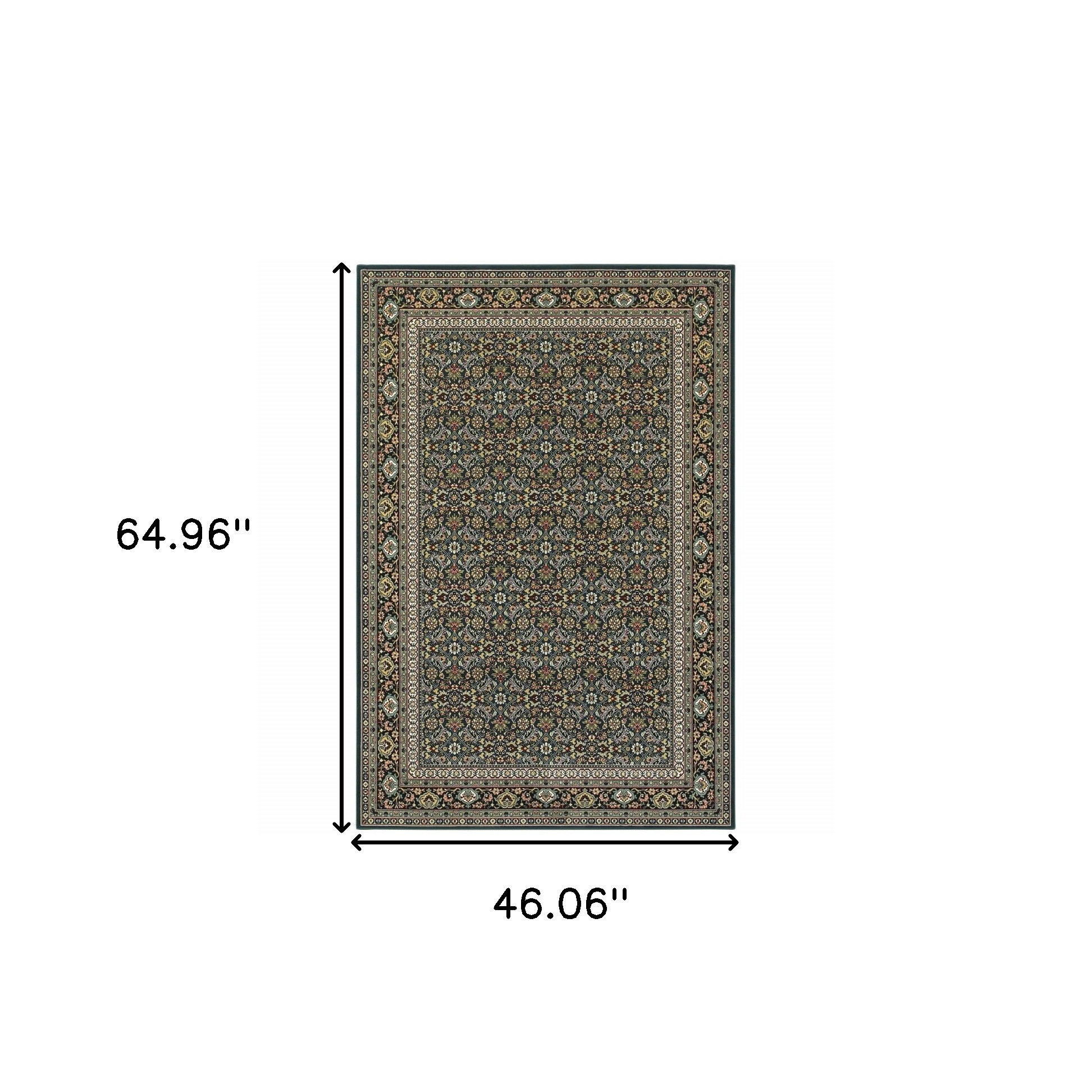 Add some artistry to your room with this 4-foot x 6-foot blue and green oriental power loom area rug. This rectangle shaped rug features a oriental design in blue and green to give it visual interest. A classic shape marries with good looking design for your space ideal for spaces with kids and pets, this rug is stain resistant to help repel stains and spilled liquids. Place this area rug against a hardwood or tile floor and it will enliven your living space with style and sophistication. 46.06-inch H x 64.96-inch W x 0.31-inch D