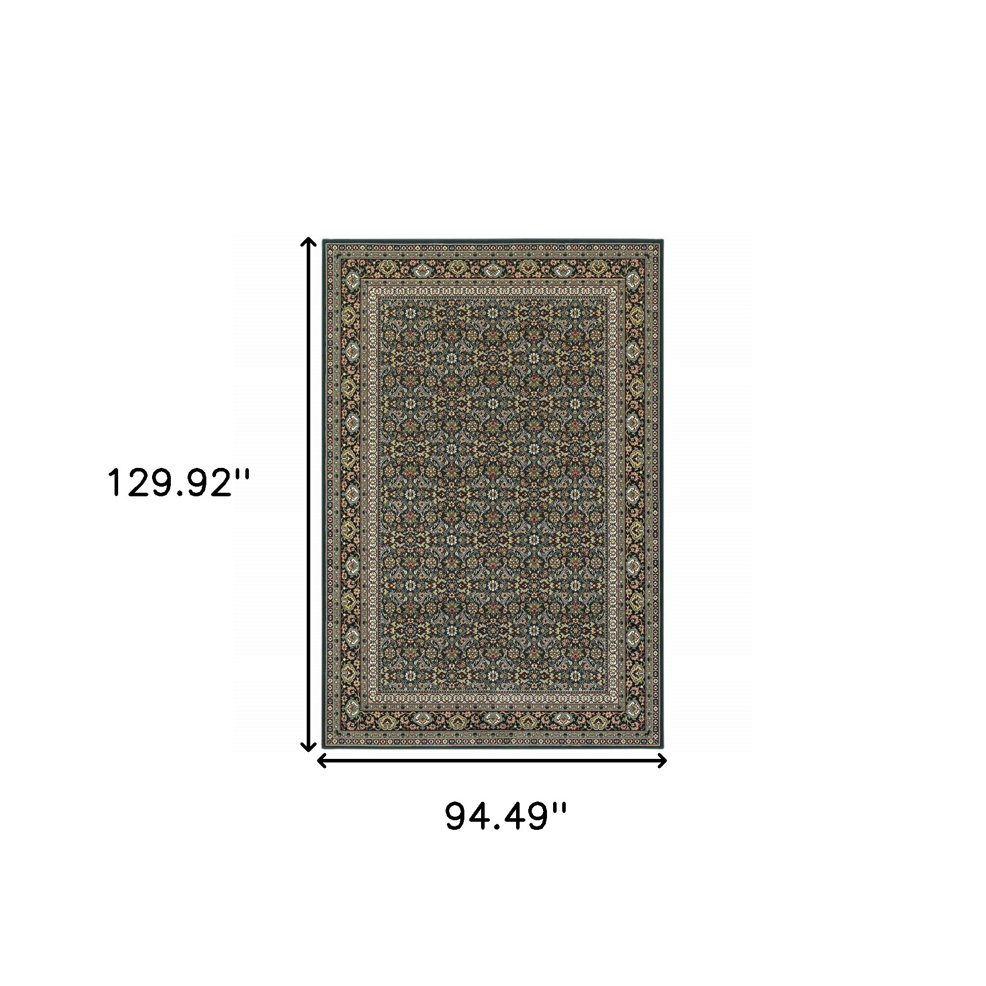 Set an inviting tone in your space with this 8' x 11' navy blue green red ivory and yellow oriental power loom stain resistant area rug. This rectangle shaped rug features a oriental design in navy blue green red ivory and yellow to give it visual interest. A classic shape marries with good looking design for your space Ideal for spaces with kids and pets, this rug is stain resistant to help repel stains and spilled liquids. Place this area rug against a hardwood or tile floor and it will enliven your living space with style and sophistication. 0.31" H x 94.49" W x 129.92" D