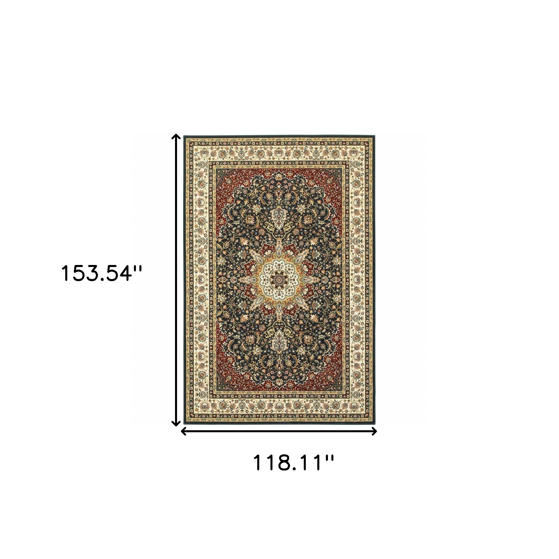 This 10' x 13' navy and ivory oriental power loom stain resistant area rug, is a great way to add warmth to a room. This rectangle shaped rug features a oriental design in navy and ivory to give it visual interest. A classic shape marries with good looking design for your space Ideal for spaces with kids and pets, this rug is stain resistant to help repel stains and spilled liquids. Area Rugs help to give warmth and sense of home to your space. 0.31" H x 118.11" W x 153.54" D