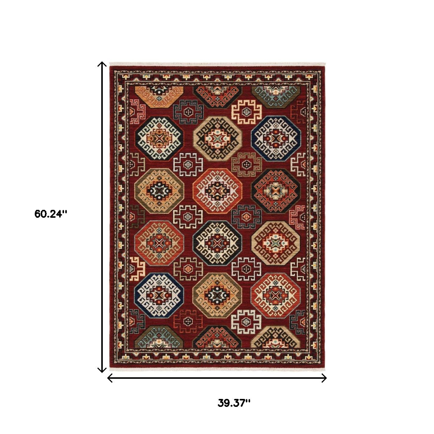 Add great coloration and comfortable texture to your space with this 3' x 5' red blue brown and beige oriental power loom stain resistant area rug with fringe. This rectangle shaped rug features a oriental design in red blue brown and beige to give it visual interest. A classic shape marries with good looking design for your space Ideal for spaces with kids and pets, this rug is stain resistant to help repel stains and spilled liquids. Tassel ends bring a timeless and fashionable look to your interior. Area Rugs help to give warmth and sense of home to your space. 0.31" H x 39.37" W x 60.24" D