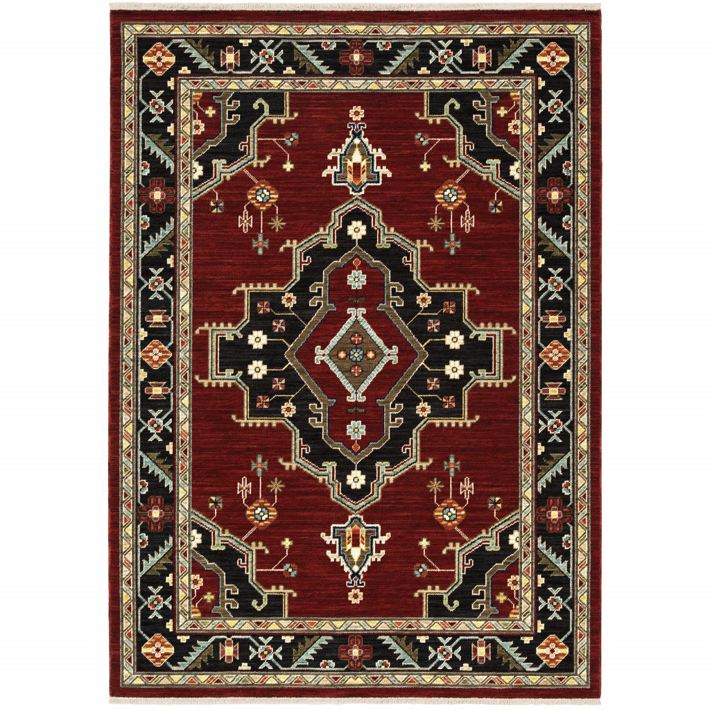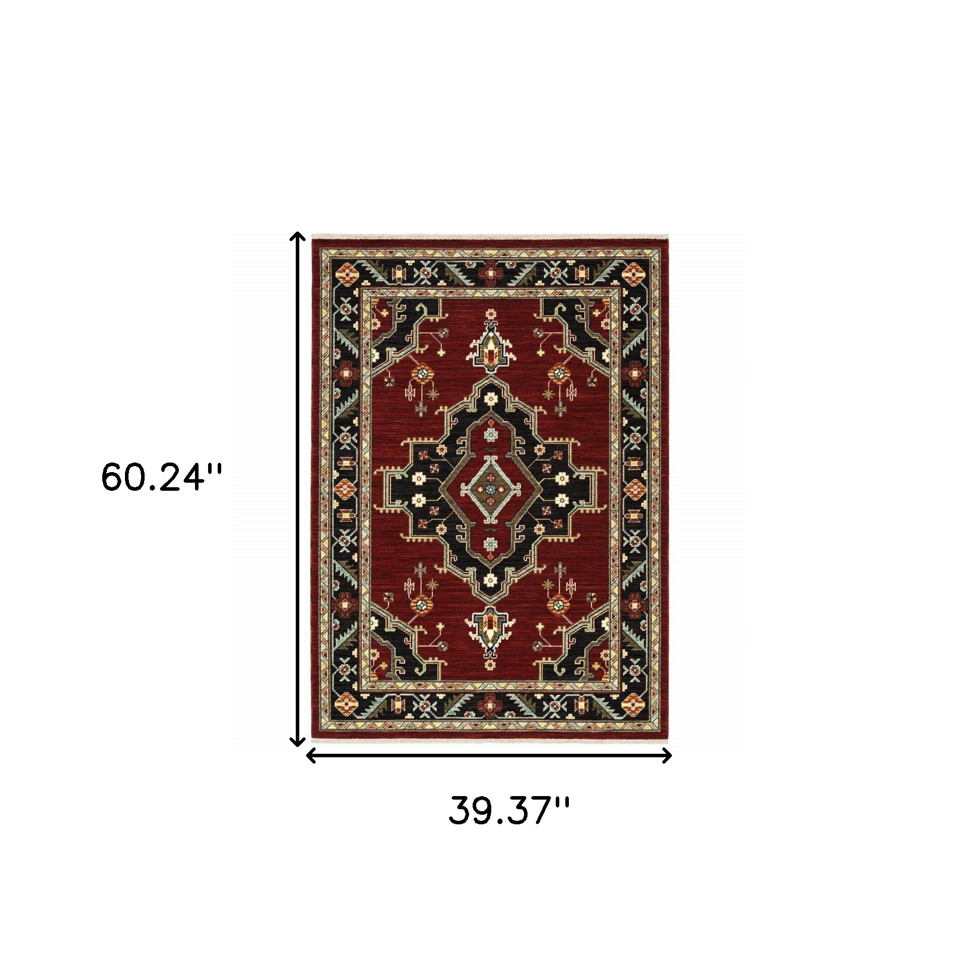 Add great coloration and comfortable texture to your space with this 3-foot x 5-foot red and black oriental power loom area rug. This rectangle shaped rug features a oriental design in red and black to give it visual interest. A classic shape marries with good looking design for your space ideal for spaces with kids and pets, this rug is stain resistant to help repel stains and spilled liquids. Place this area rug against a hardwood or tile floor and it will enliven your living space with style and sophistication. 39.37-inch H x 60.24-inch W x 0.31-inch D