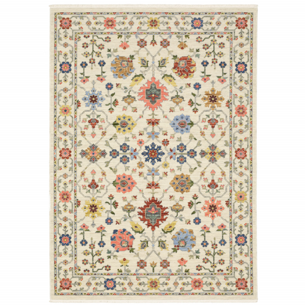 Add some artistry to your room with this 2' x 3' ivory oriental power loom stain resistant area rug with fringe. This rectangle shaped rug features a oriental design in ivory to give it visual interest. A classic shape marries with good looking design for your space Ideal for spaces with kids and pets, this rug is stain resistant to help repel stains and spilled liquids. Tassel ends bring a timeless and fashionable look to your interior. Place this area rug against a hardwood or tile floor and it will enliven your living space with style and sophistication. 0.31" H x 23.62" W x 36.22" D