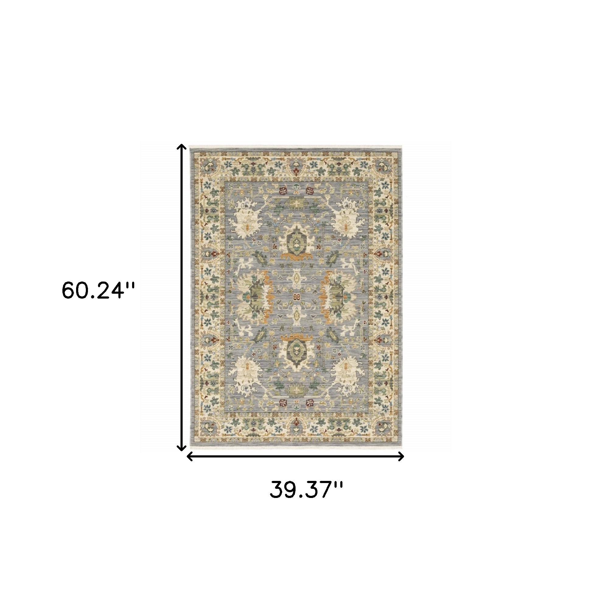 This 3' x 5' grey ivory orange teal green charcoal blue and red oriental power loom stain resistant area rug with fringe, is a great way to add warmth to a room. This rectangle shaped rug features a oriental design in grey ivory orange teal green charcoal blue and red to give it visual interest. A classic shape marries with good looking design for your space Ideal for spaces with kids and pets, this rug is stain resistant to help repel stains and spilled liquids. Tassel ends bring a timeless and fashionable look to your interior. Area Rugs help to give warmth and sense of home to your space. 0.31" H x 39.37" W x 60.24" D