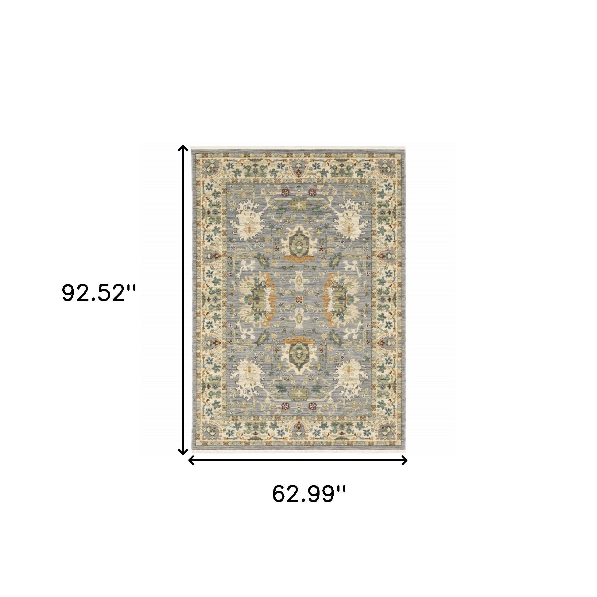 This 5' x 8' blue and ivory oriental power loom stain resistant area rug with fringe, is a great way to add warmth to a room. This rectangle shaped rug features a oriental design in blue and ivory to give it visual interest. A classic shape marries with good looking design for your space Ideal for spaces with kids and pets, this rug is stain resistant to help repel stains and spilled liquids. Tassel ends bring a timeless and fashionable look to your interior. Place this area rug against a hardwood or tile floor and it will enliven your living space with style and sophistication. 0.31" H x 62.99" W x 92.52" D