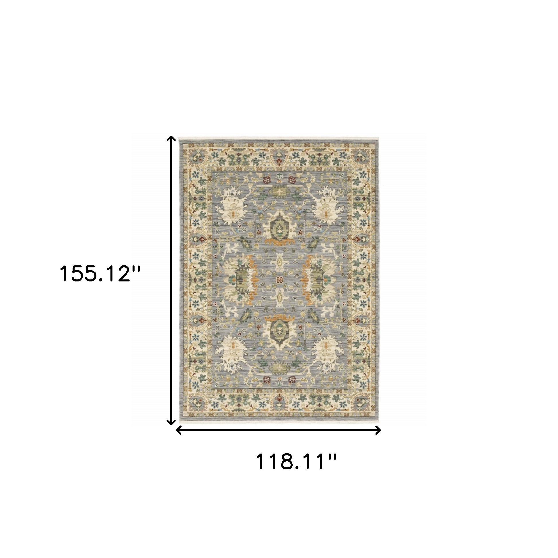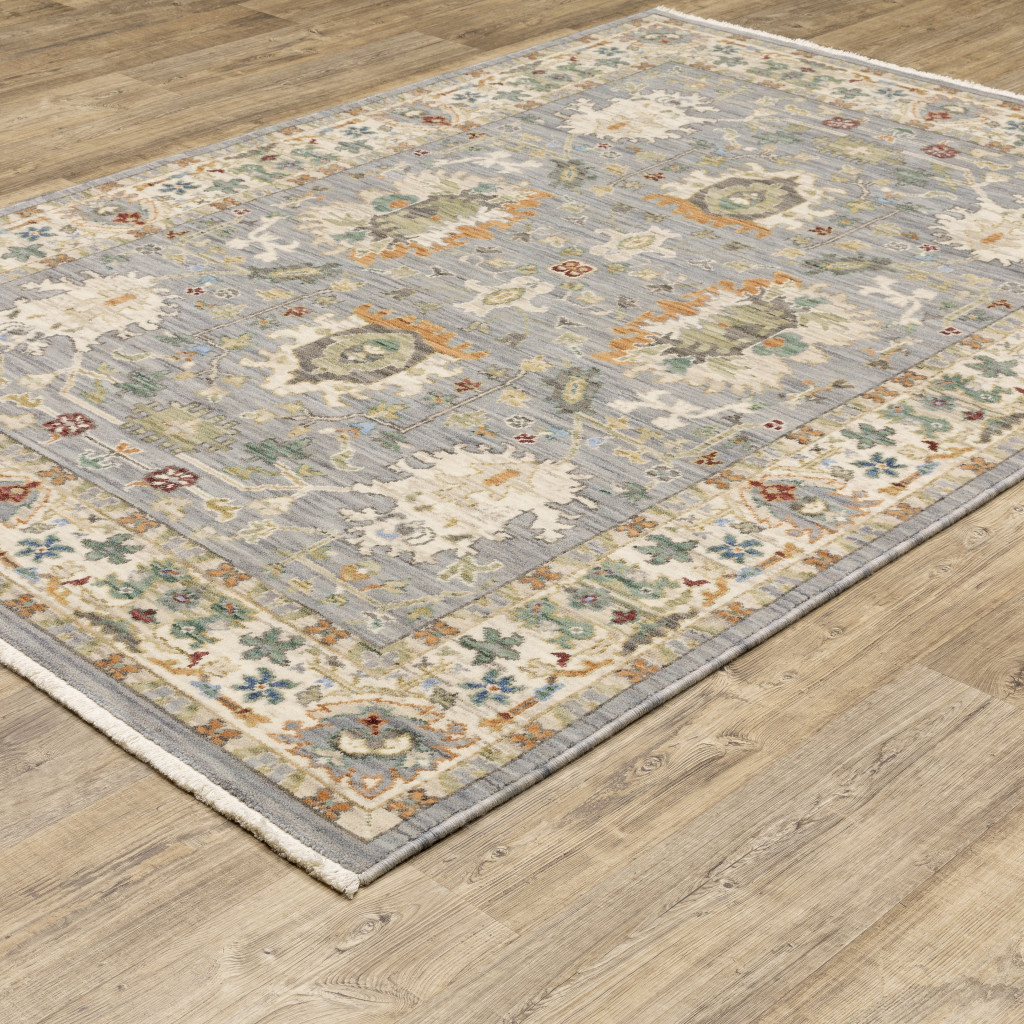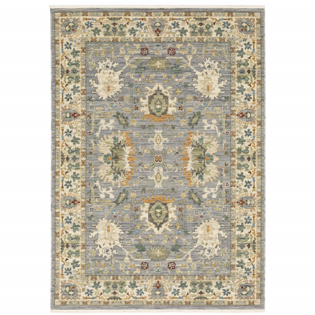 Add great coloration and comfortable texture to your space with this 10' x 13' grey ivory orange teal green charcoal blue and red oriental power loom stain resistant area rug with fringe. This rectangle shaped rug features a oriental design in grey ivory orange teal green charcoal blue and red to give it visual interest. A classic shape marries with good looking design for your space Ideal for spaces with kids and pets, this rug is stain resistant to help repel stains and spilled liquids. Tassel ends bring a timeless and fashionable look to your interior. Area Rugs help to give warmth and sense of home to your space. 0.31" H x 118.11" W x 155.12" D