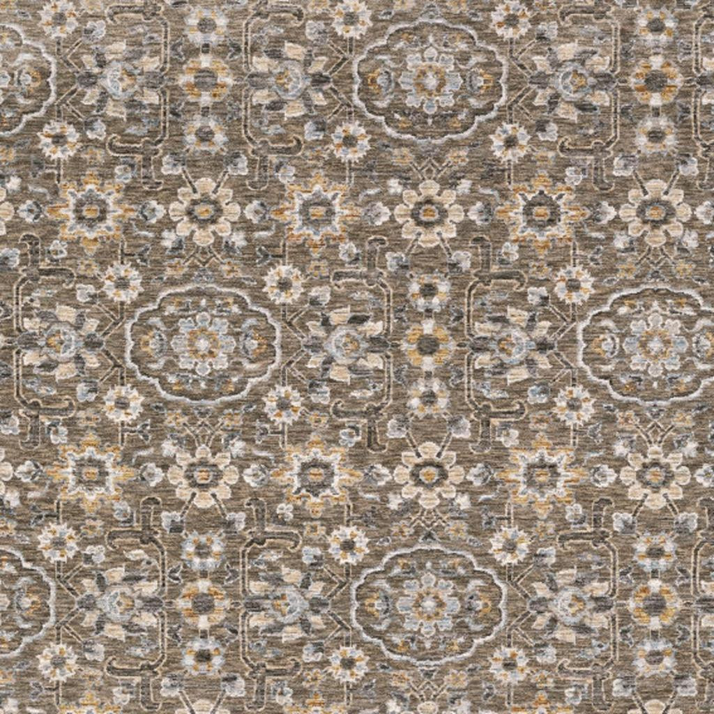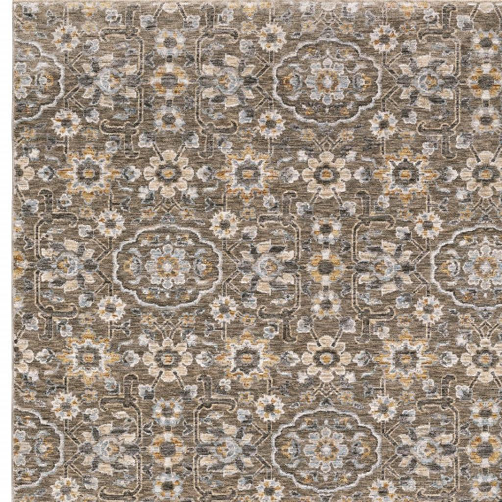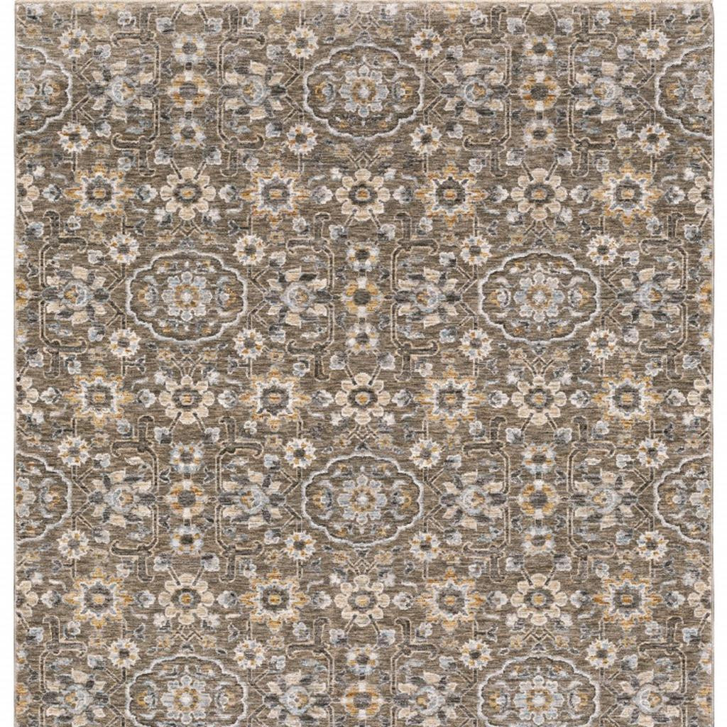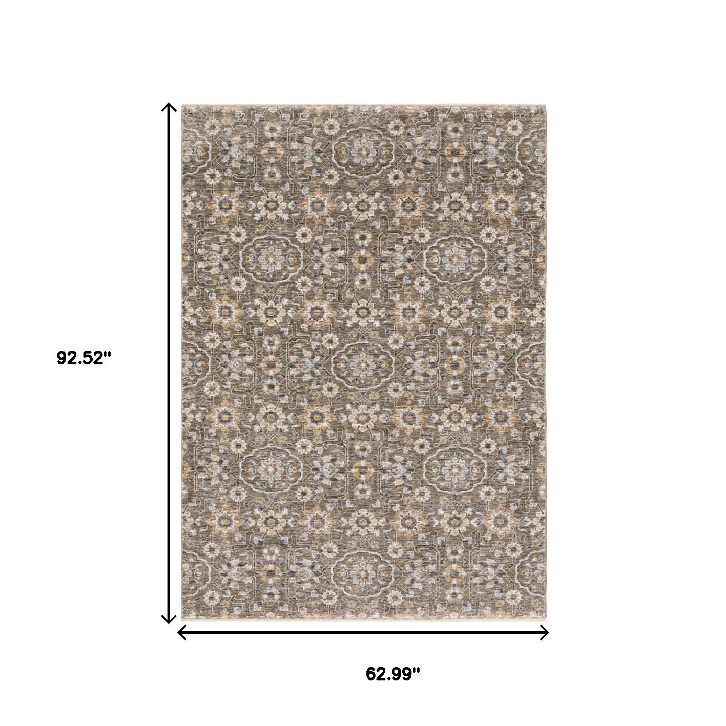 Add great coloration and comfortable texture to your space with this 5' x 8' grey and tan floral power loom stain resistant area rug with fringe. This rectangle shaped rug features a floral design in grey and tan to give it visual interest. A classic shape marries with good looking design for your space Ideal for spaces with kids and pets, this rug is stain resistant to help repel stains and spilled liquids. Tassel ends bring a timeless and fashionable look to your interior. Area Rugs help to give warmth and sense of home to your space. 0.23" H x 62.99" W x 92.52" D