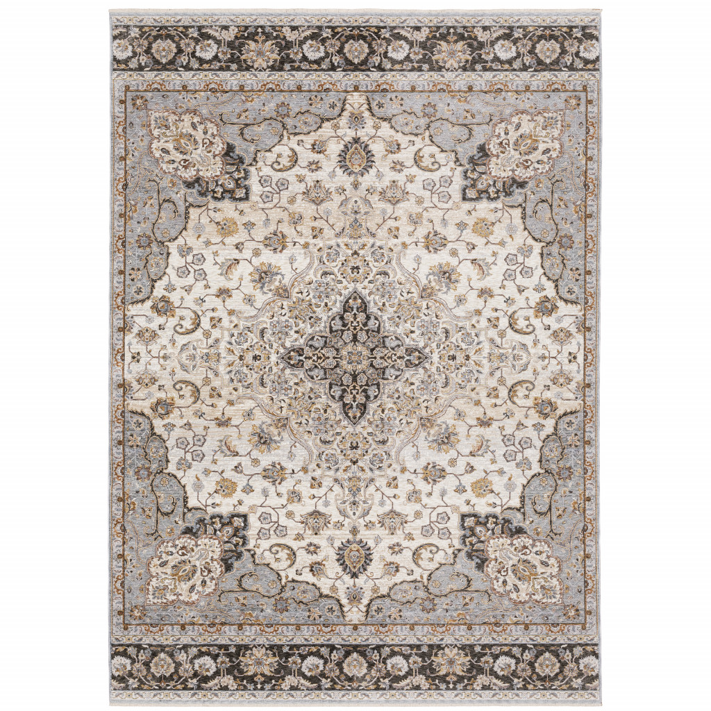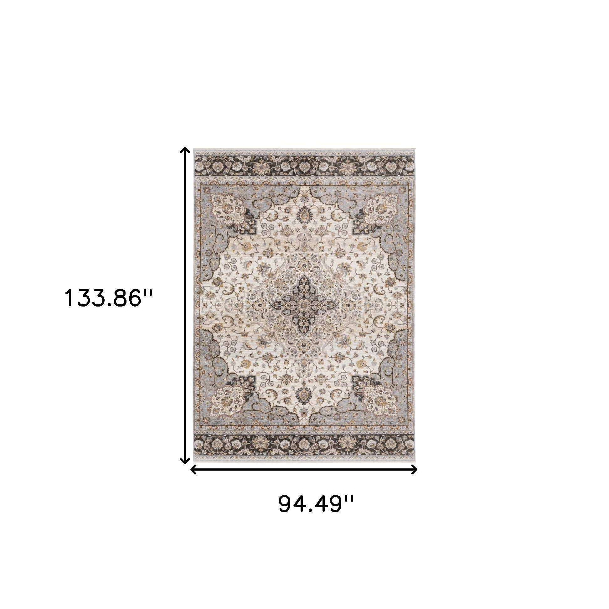 Add some artistry to your room with this 8-foot x 11-foot ivory and blue oriental area rug with fringe. Ideal for spaces with kids and pets, this rug is stain resistant to help repel dirt and spilled liquids. Built to last, this rug crafted from polyester fibers is known for its durability and long lasting appeal. Rugs are a great way to showcase your style, hide imperfections, warm your home and reduce noise. Tassel ends bring a timeless and fashionable look to your interior. This larger sized, traditional styled rug is ready to create a focal point or statement piece in your room. 94.49-inch h x 133.86-inch w x 0.23-inch d.