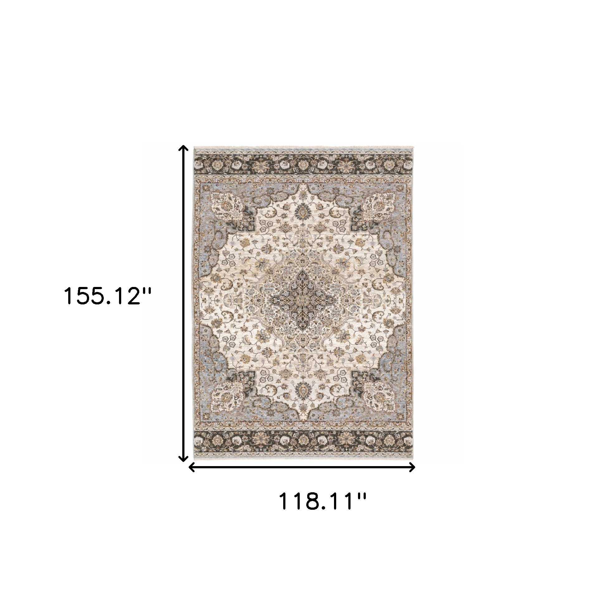 Add some artistry to your room with this 10' x 13' ivory and blue oriental power loom stain resistant area rug with fringe. This rectangle shaped rug features a oriental design in ivory and blue to give it visual interest. A classic shape marries with good looking design for your space Ideal for spaces with kids and pets, this rug is stain resistant to help repel stains and spilled liquids. Tassel ends bring a timeless and fashionable look to your interior. Place this area rug against a hardwood or tile floor and it will enliven your living space with style and sophistication. 0.23" H x 118.11" W x 155.12" D