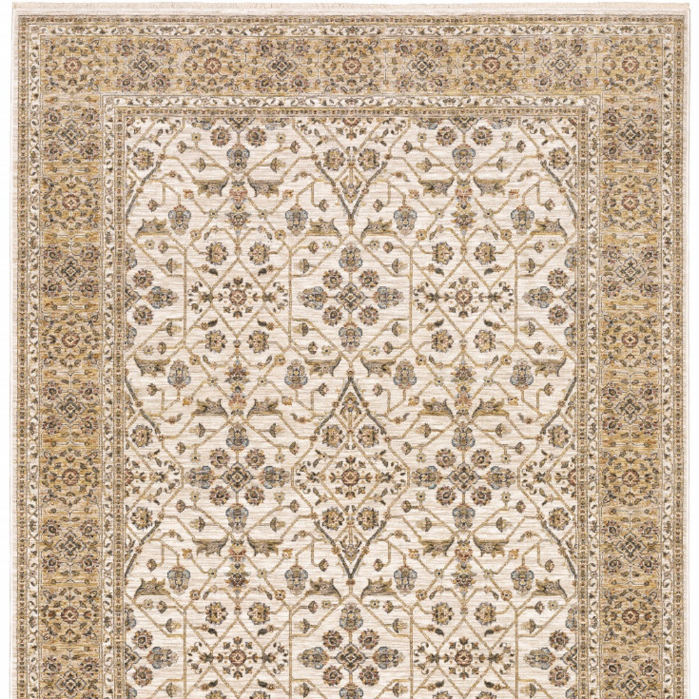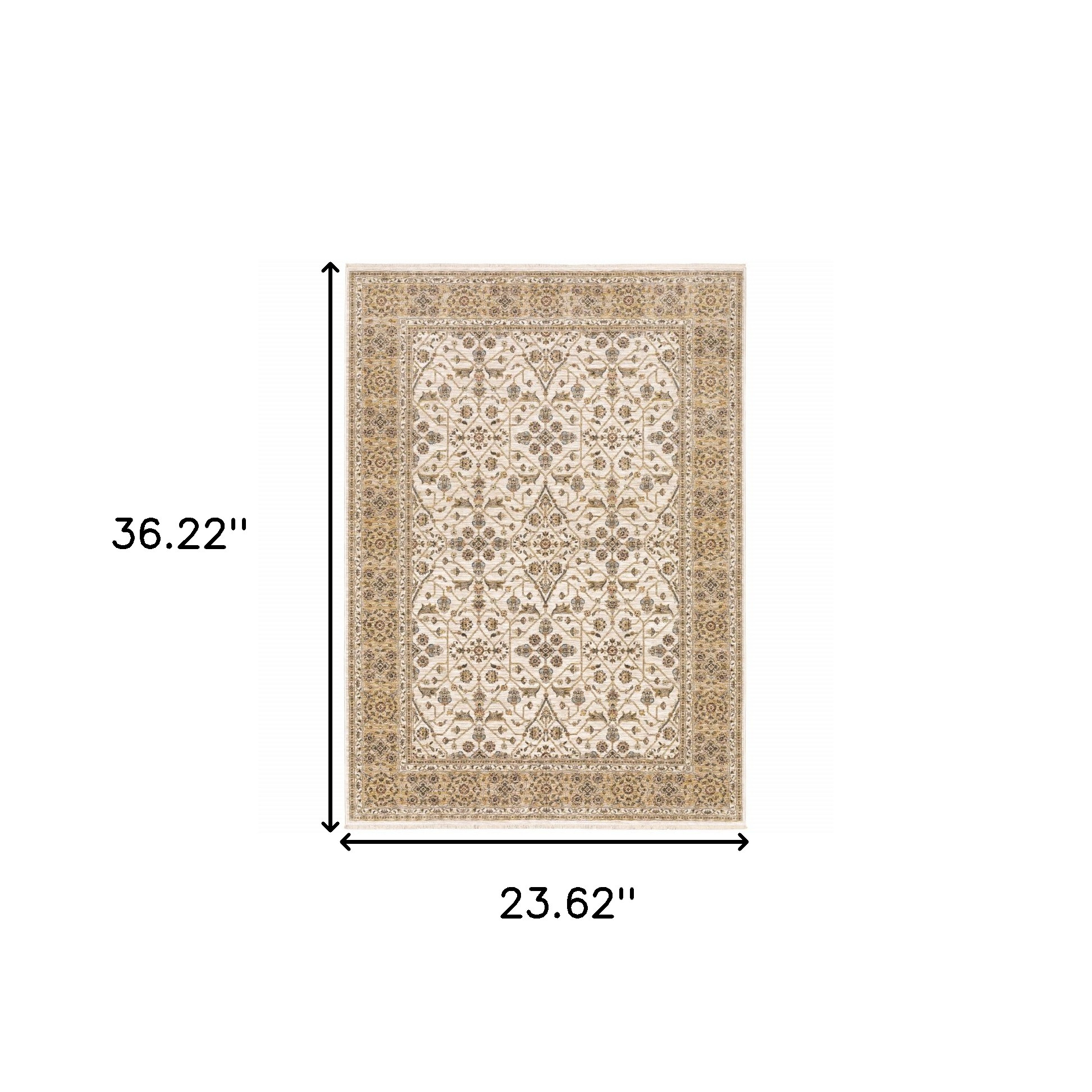 Set an inviting tone in your space with this 2' x 3' ivory and gold oriental power loom stain resistant area rug with fringe. This rectangle shaped rug features a oriental design in ivory and gold to give it visual interest. A classic shape marries with good looking design for your space Ideal for spaces with kids and pets, this rug is stain resistant to help repel stains and spilled liquids. Tassel ends bring a timeless and fashionable look to your interior. Area Rugs help to give warmth and sense of home to your space. 0.23" H x 23.62" W x 36.22" D