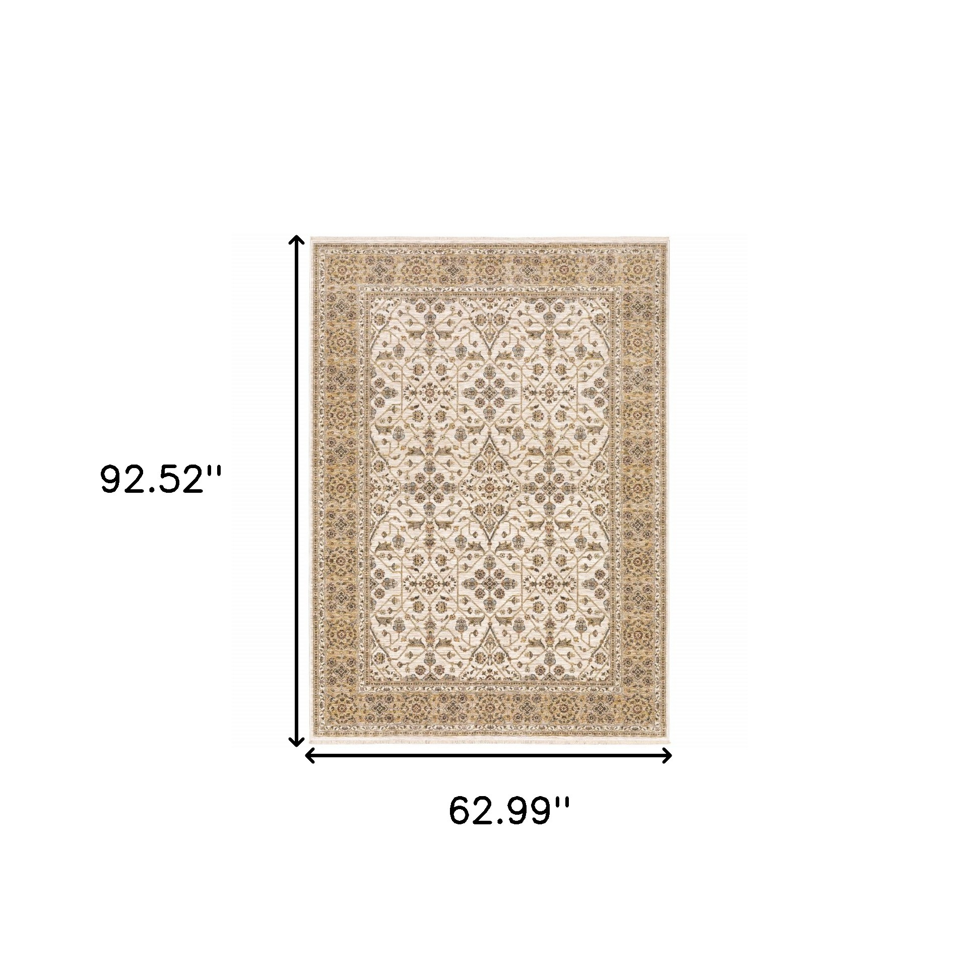5' X 8' Ivory And Gold Oriental Power Loom Stain Resistant Area Rug With Fringe